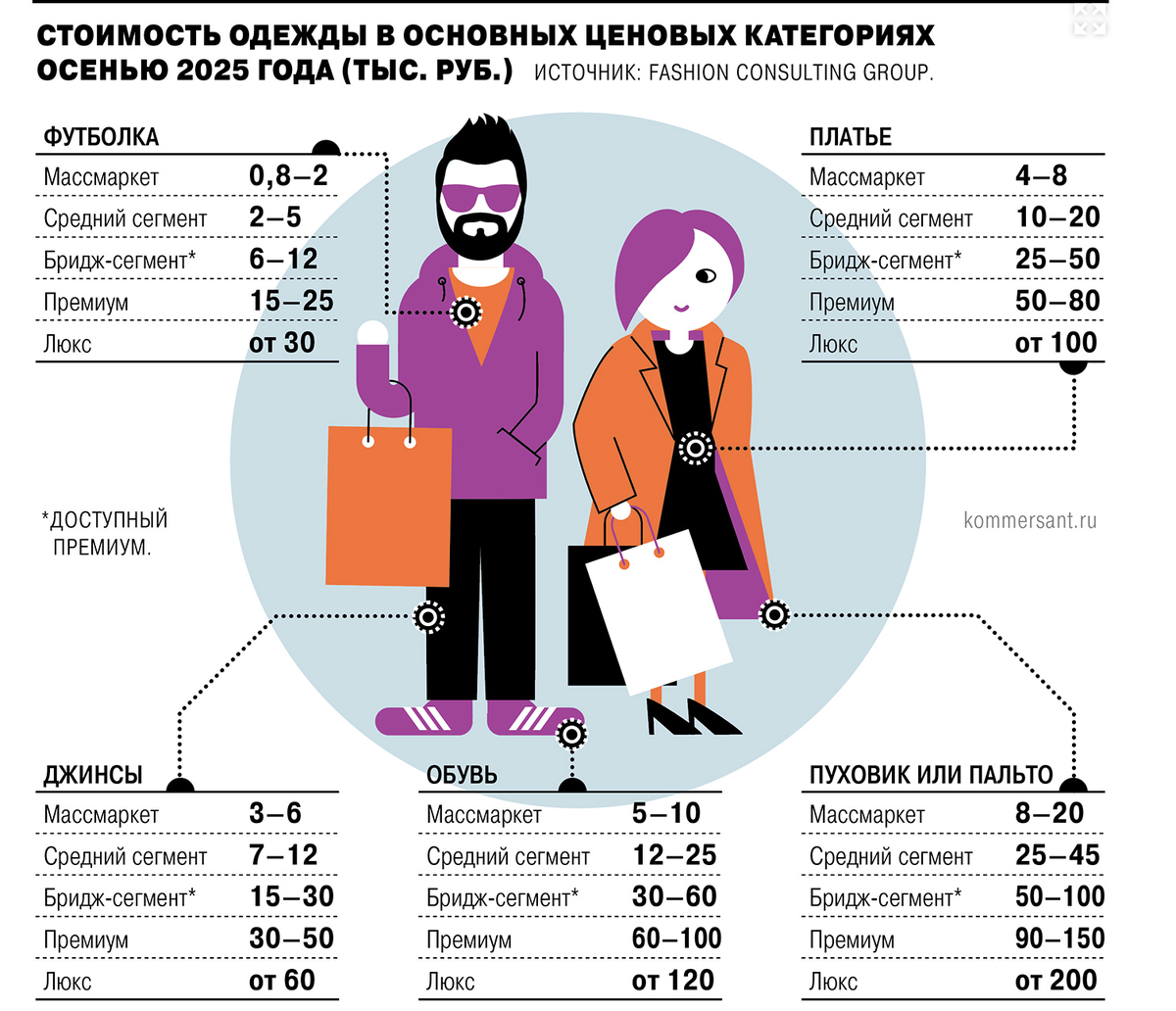 Если 2022 и 2023 годы были отмечены резким увеличением цен (на обувь на целых 60%, на одежду — 36%), то текущий год демонстрирует совсем другую картину. По оценкам экспертов, рост цен на одежду и обувь составляет 6-9%, что пребывает в пределах общей инфляции. Средний чек не угнетает: он увеличился всего на 6% для обуви, и на 9% для одежды. Даже Росстат зафиксировал случаи, когда рост цен оказался всего в 2.5-3%. Это создаёт ощущение, что покупка новой пары джинсов больше не требует специального планирования, а цена не успевает устаревать за считанные дни.