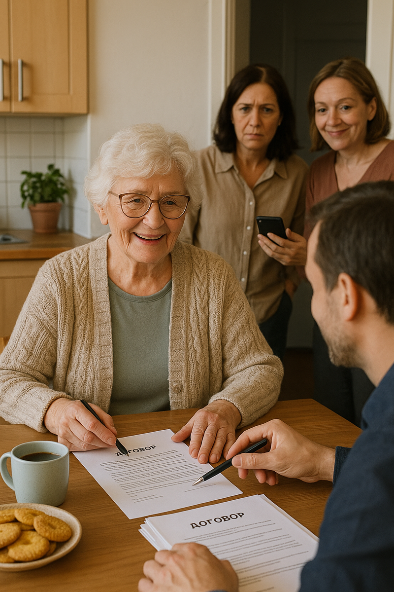 Первый шаг в этой хитроумной игре заключается в создании образа доверительной и растерянной "бабушки", которая предлагает чай и рассказывает истории о своей жизни. Однако за кулисами уже действуют "родственники" и фальшивые юристы, готовые подтвердить "сниженные умственные способности" пожилой женщины.