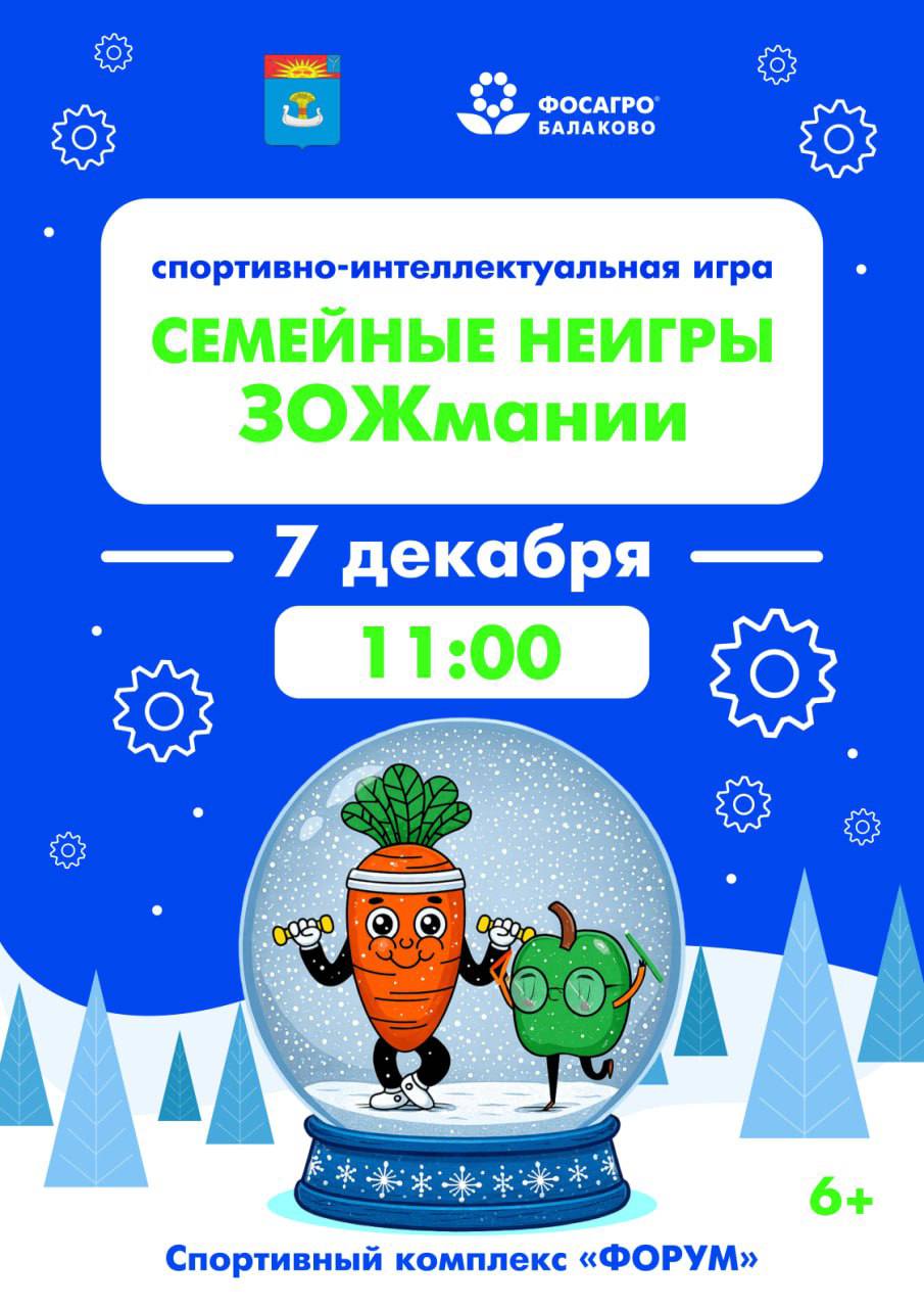 Дружные семьи Балаковского района, внимание! 7 декабря 2025 года вас ждёт яркое и активное событие — спортивное состязание «Семейные НеИгры ЗОЖмании». Это уникальный шанс провести выходной день с пользой для здоровья, укрепить семейные узы и получить заряд бодрости и положительных эмоций!