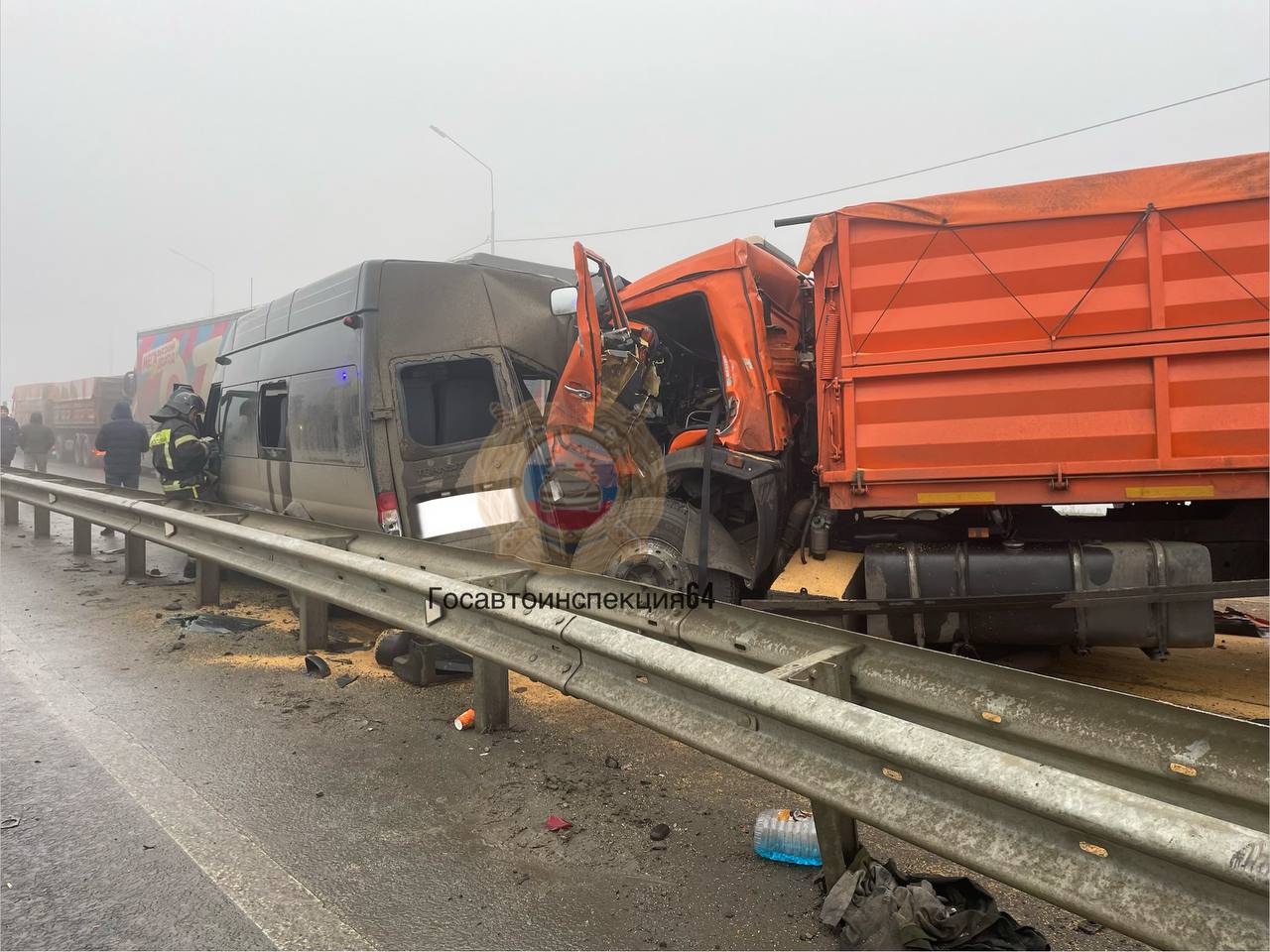 Дорожно-транспортное происшествие случилось около 9.10 на 724 км автодороги Р-22 Каспий «Тамбов – Волгоград – Астрахань» (автоподъезд к Саратову). По предварительным данным, столкнулись три «КамАЗа», автомобиль «Форд Транзит», «Тойота» и «Вольво». В результате столкновения пострадали три человека: женщина-пассажир 1985 г. р. вместе с мужчиной 1975 г. р. из «Форда», а также водитель 1999 г. р. одного из «КамАЗов».