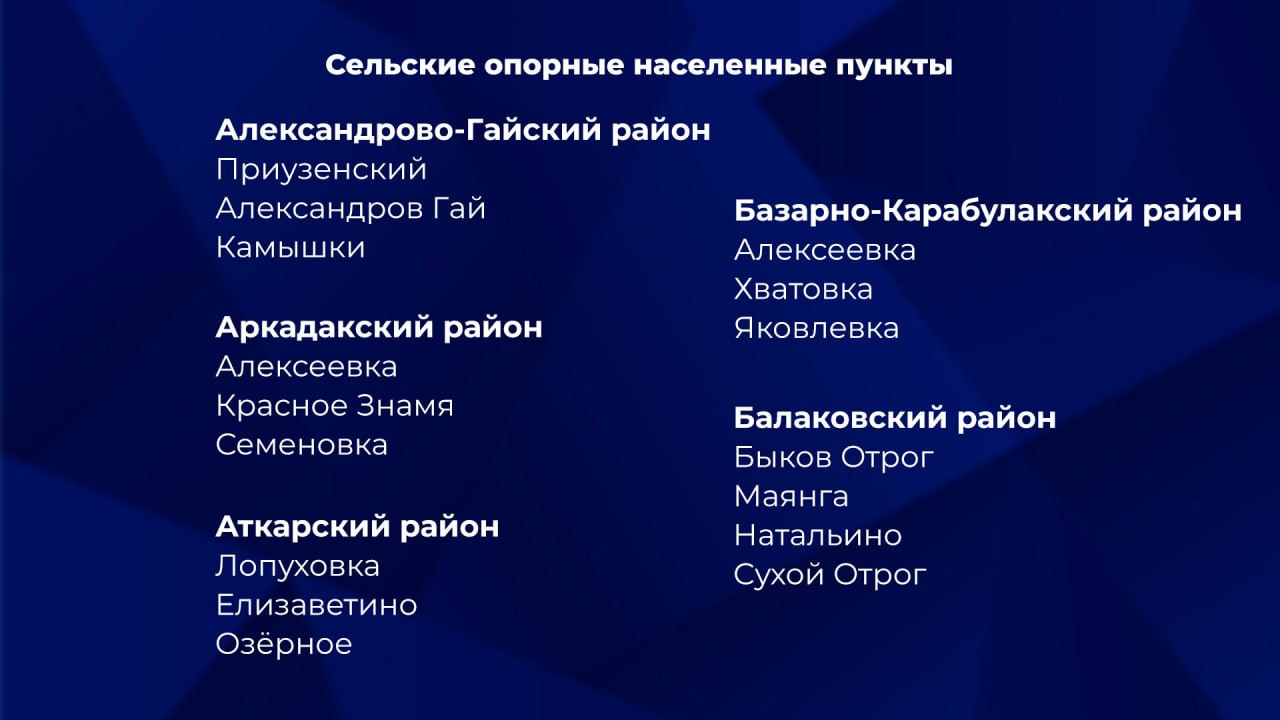 Губернатор Саратовской области Роман Бусаргин отметил, что речь идет о создании "точек роста" в каждом районе. Развитие этих точек должно обеспечить укрепление прилегающих территорий.