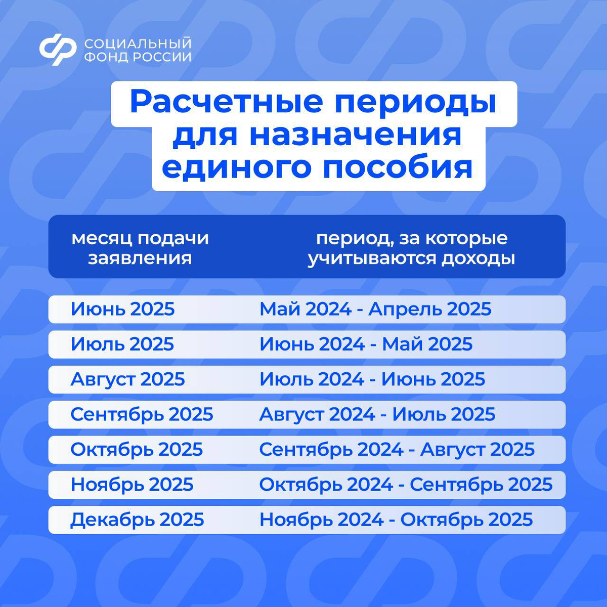 1. Если заявление подано в июне 2025 года, учитываются доходы с мая 2024 по апрель 2025 года.