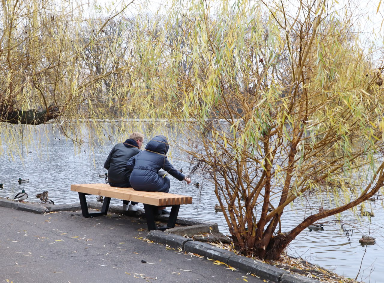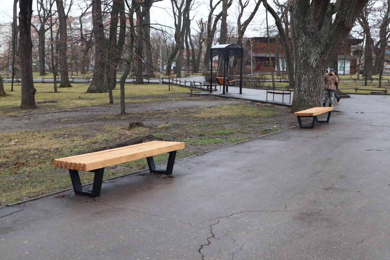 В городском парке устанавливают новые лавочки