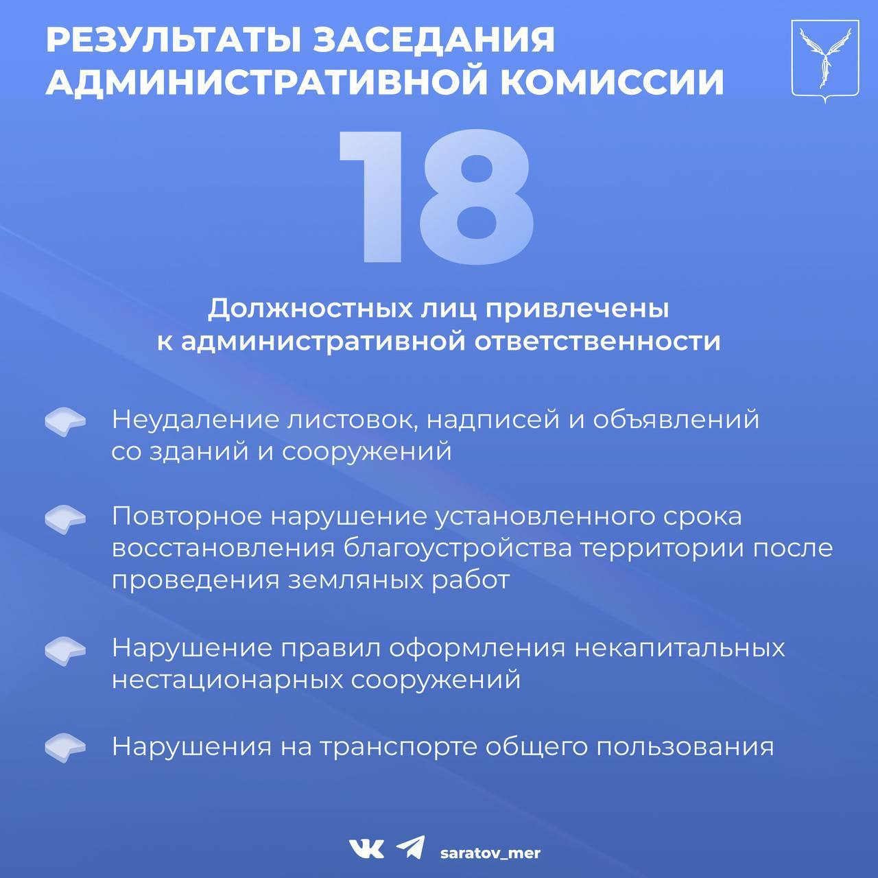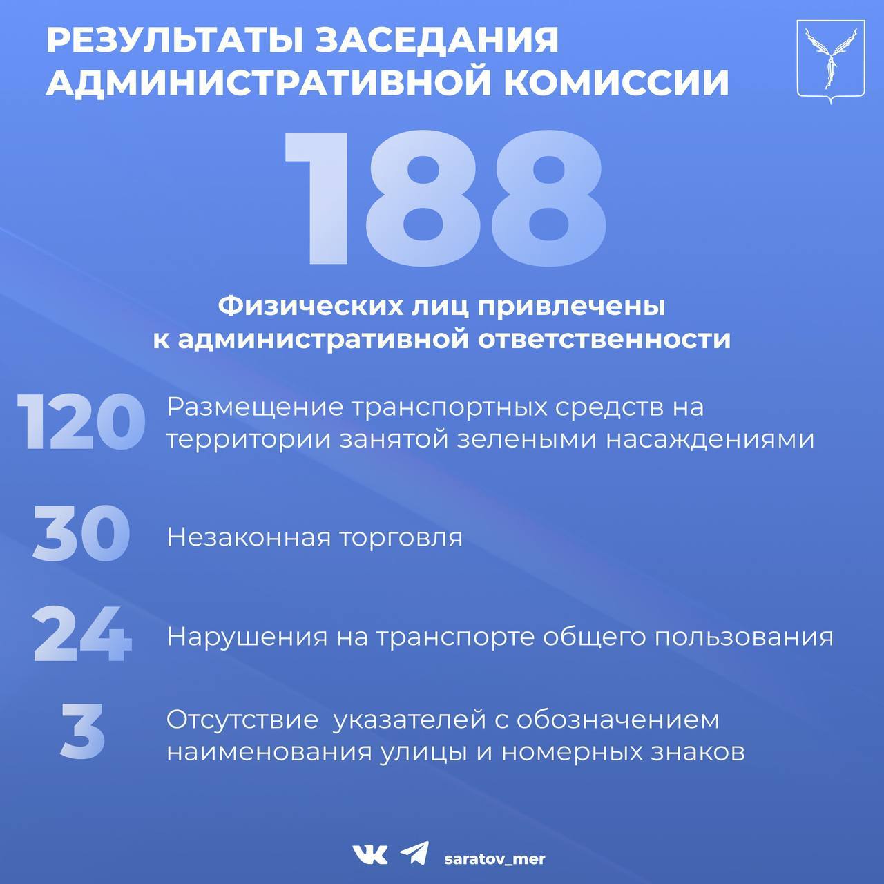 Состоялось очередное заседание административной комиссии муниципального образования «Город Саратов», в ходе которого было рассмотрено 265 дел