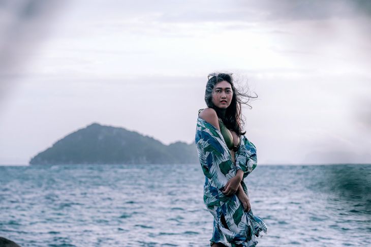 В отпуск или на отдых его можно взять из хлопка или атласа. Например, на пляже его можно носить как защиту от солнца, повязав с красивым узлом или брошью на плечи. Как пляжное платье, повязав его на груди или обмотав края вокруг шеи. Когда будет пасмурная погода или вы отправитесь в горы, можно использовать как защиту от ветра и прохлады.