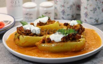 При подаче блюдо можно украсить остатками соуса и добавлением йогурта сверху. Фаршированные перцы особенно хорошо сочетаются с отварным рисом, который подчеркивает восхитительный вкус этого гурманского блюда.