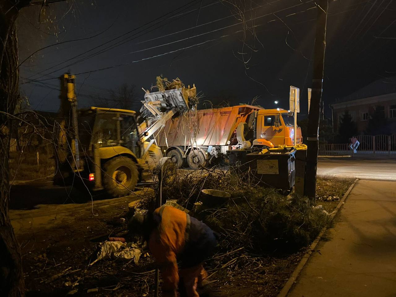 В ночные часы вывоз проводили после плановой опиловки зеленых насаждений, а также вблизи контейнерных площадок по следующим улицам: Пушкина, Телеграфная, Пристанская, М. Василевского и др.