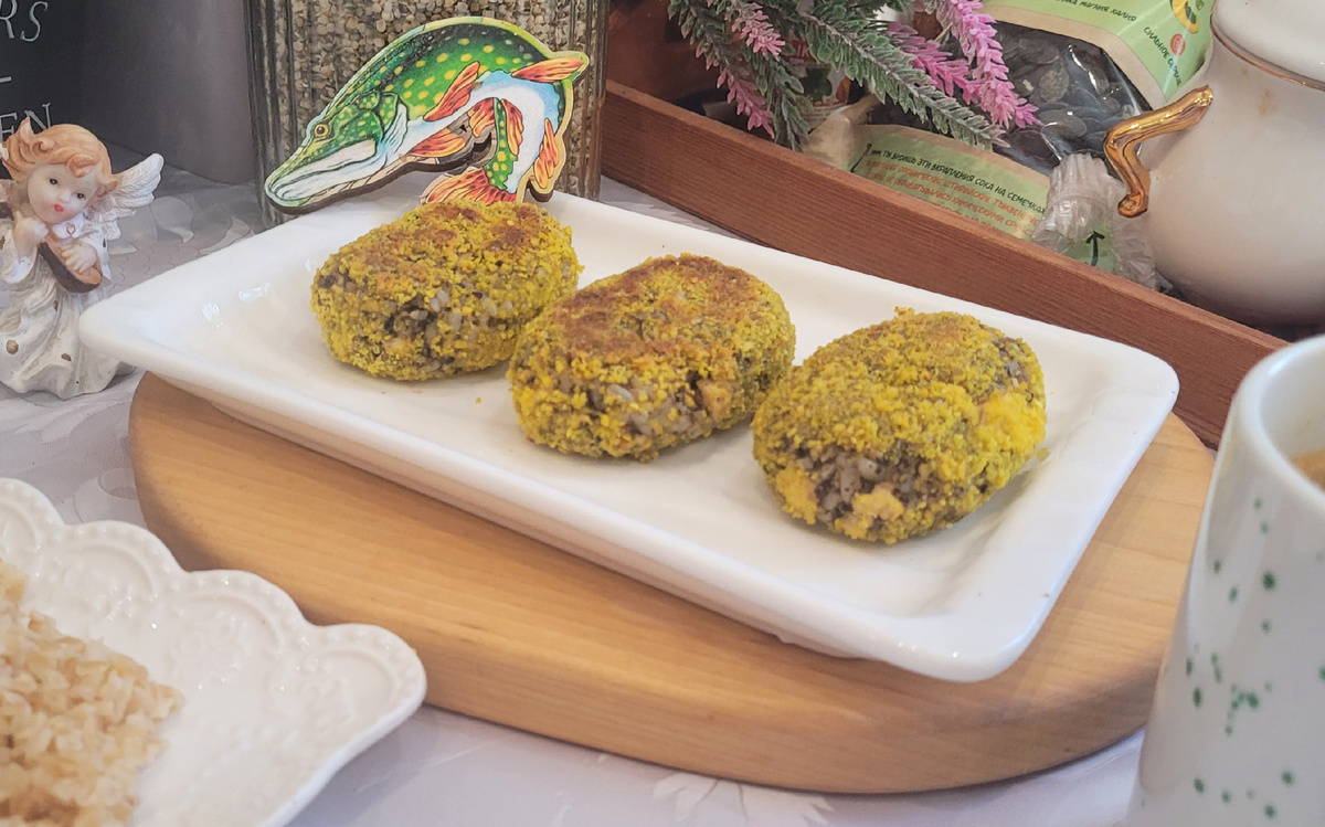 5. Сформировать котлеты, обвалять их в кукурузной поленте или панировочных сухарях.
