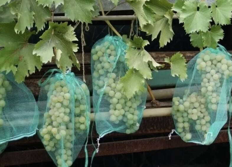 - Мелкоячеистая сетка: Накрывайте виноградные грозди сверху, избегая обматывания кустов, чтобы птицы не пробили сетку.