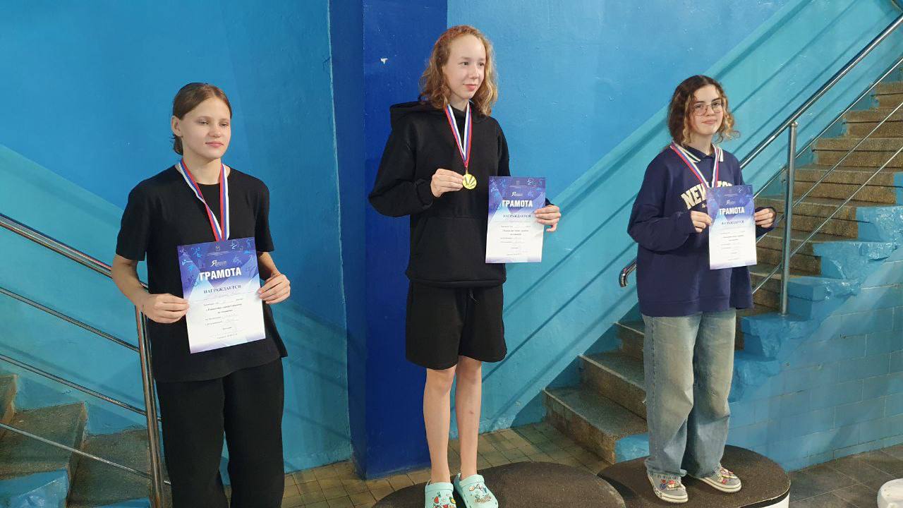 Среди девушек 13 лет на дистанции 50 м на спине Таисия Пасечник заняла 2 место, Екатерина Кузьмина - 3 место.