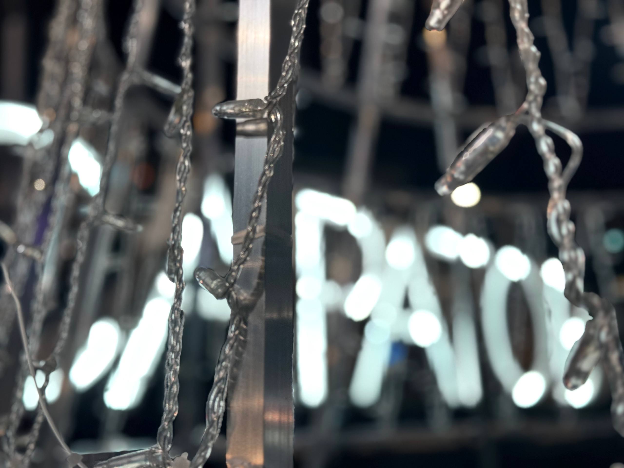 Высота елей составляет 8 метров. Каркас конструкций выполнен из алюминия.