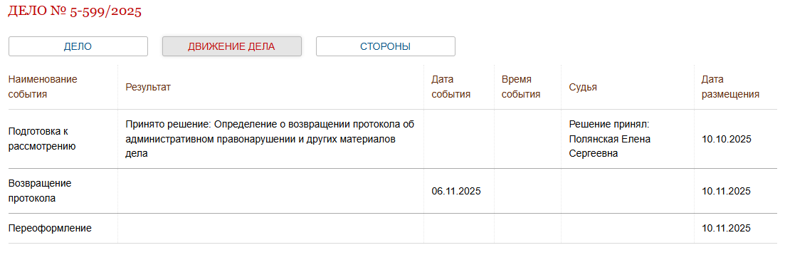 Согласно части 4 статьи 29.4 КоАП, дело может быть возвращено, если протокол составлен неправильно или если имеются недостатки в документации. Но важно отметить, что подобная процедура не завершает административное разбирательство, и дело будет пересмотрено в установленный срок. Срок давности для привлечения к ответственности по новой статье составляет 90 дней.