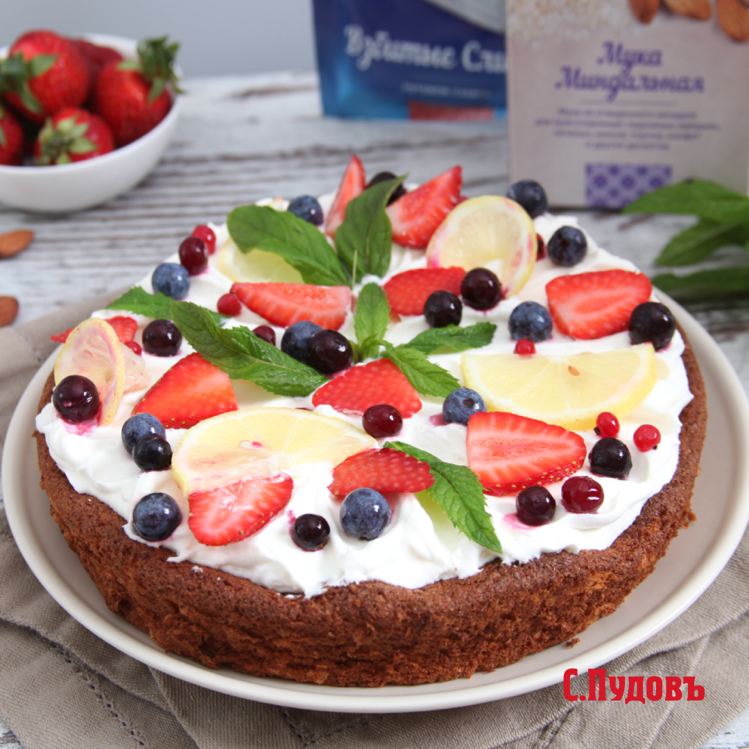 Летнее украшение торта – свежие ягодки, которые прекрасно дополняют сладость и делают десерт визуально привлекательным. В дополнение к взбитым сливкам можно использовать мякоть цитрусовых, сладкие бананы или шоколадный декор от «С.Пудовъ». Также рекомендован карамельный сироп, который в сочетании с миндальным бисквитом и сливками образует настоящую симфонию вкуса.