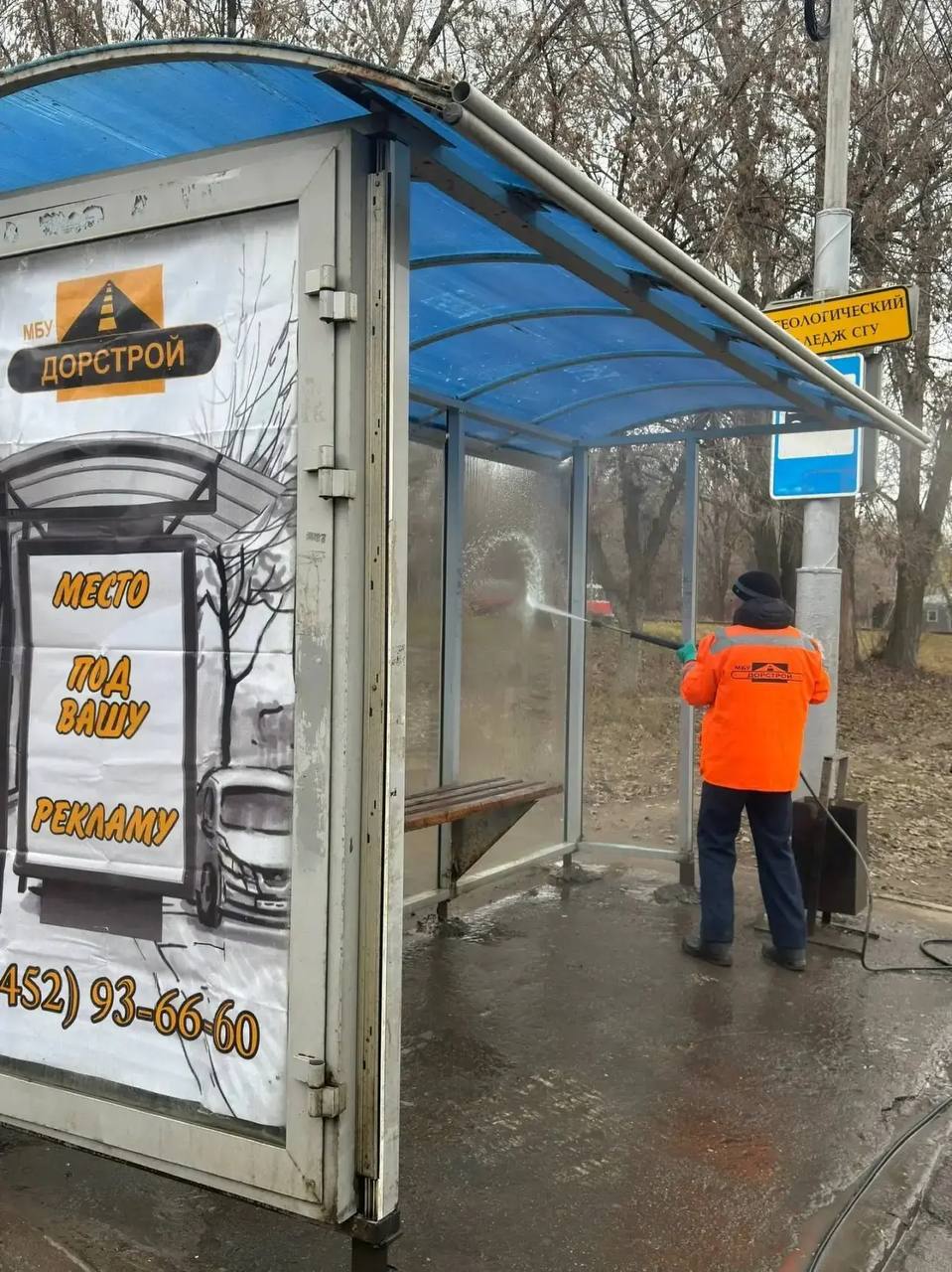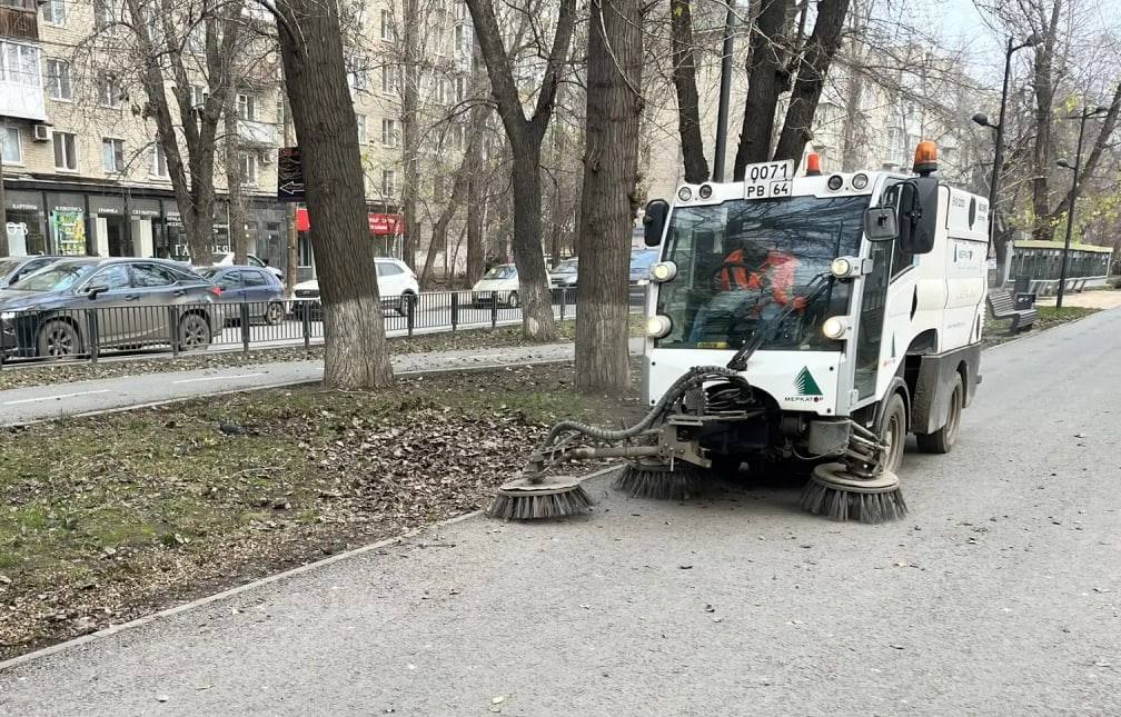 Коммунальные службы выполняют уборку дорожного полотна и пешеходных зон, мойку остановочных павильонов, сбор случайного мусора, опавшей листвы и другие работы