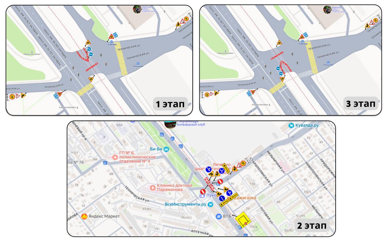 Из-за выполнения строительно-монтажных работ на 50 лет Октября в районе пересечения с ул. Техническая временно изменится схема движение. Ограничение пройдет в три этапа: