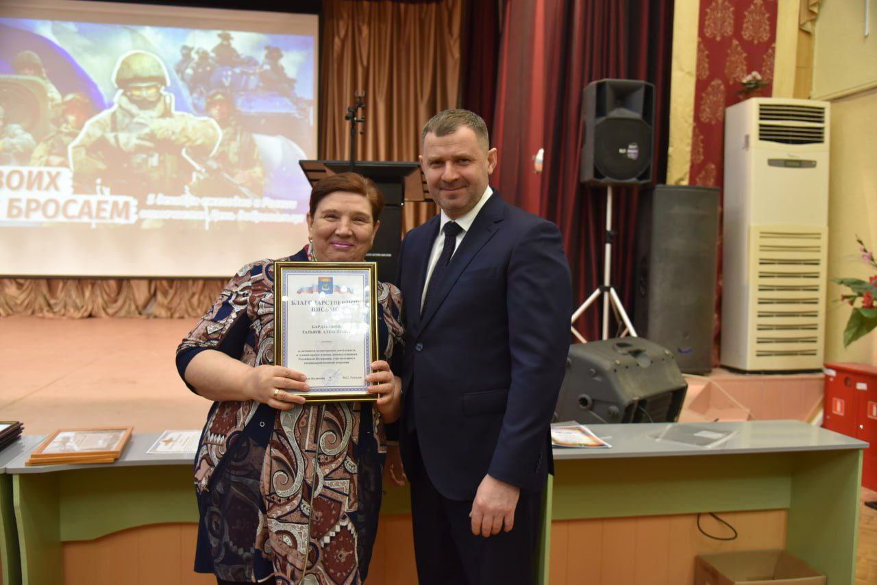 Сегодня в Губернаторском колледже прошла торжественная церемония «Город добрых сердец». На ней отметили жителей города и района, которые активно помогают военнослужащим в зоне СВО. Они регулярно отправляют гуманитарные грузы за линию фронта.