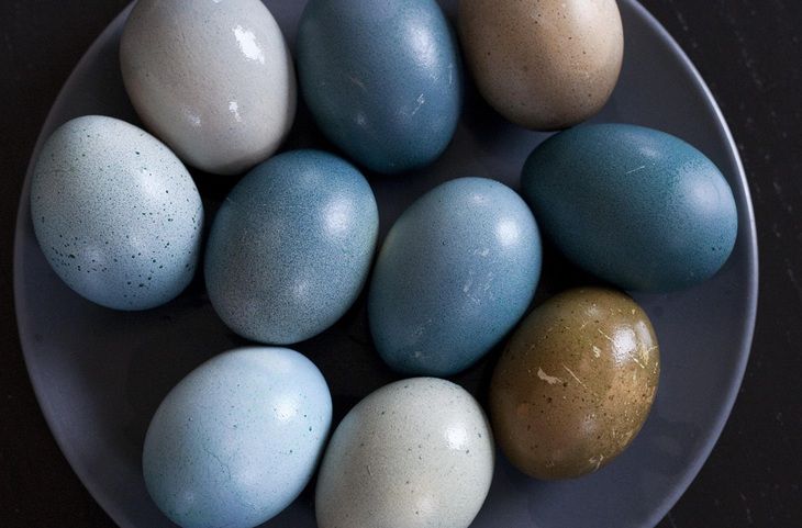 Двойной цвет: после синего окрашивания опустите половину яйца в отвар куркумы (1 ч. л. на 200 мл воды) для золотистого акцента.