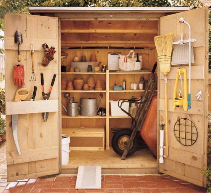 Кладовая готова к эксплуатации. Теперь, по желанию, можно добавить полки для удобного хранения инструмента или другие необходимые элементы.
