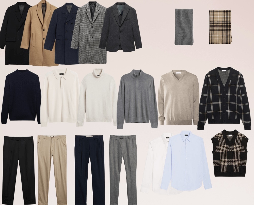 Ключевые элементы мужского гардероба можно разделить на несколько категорий: