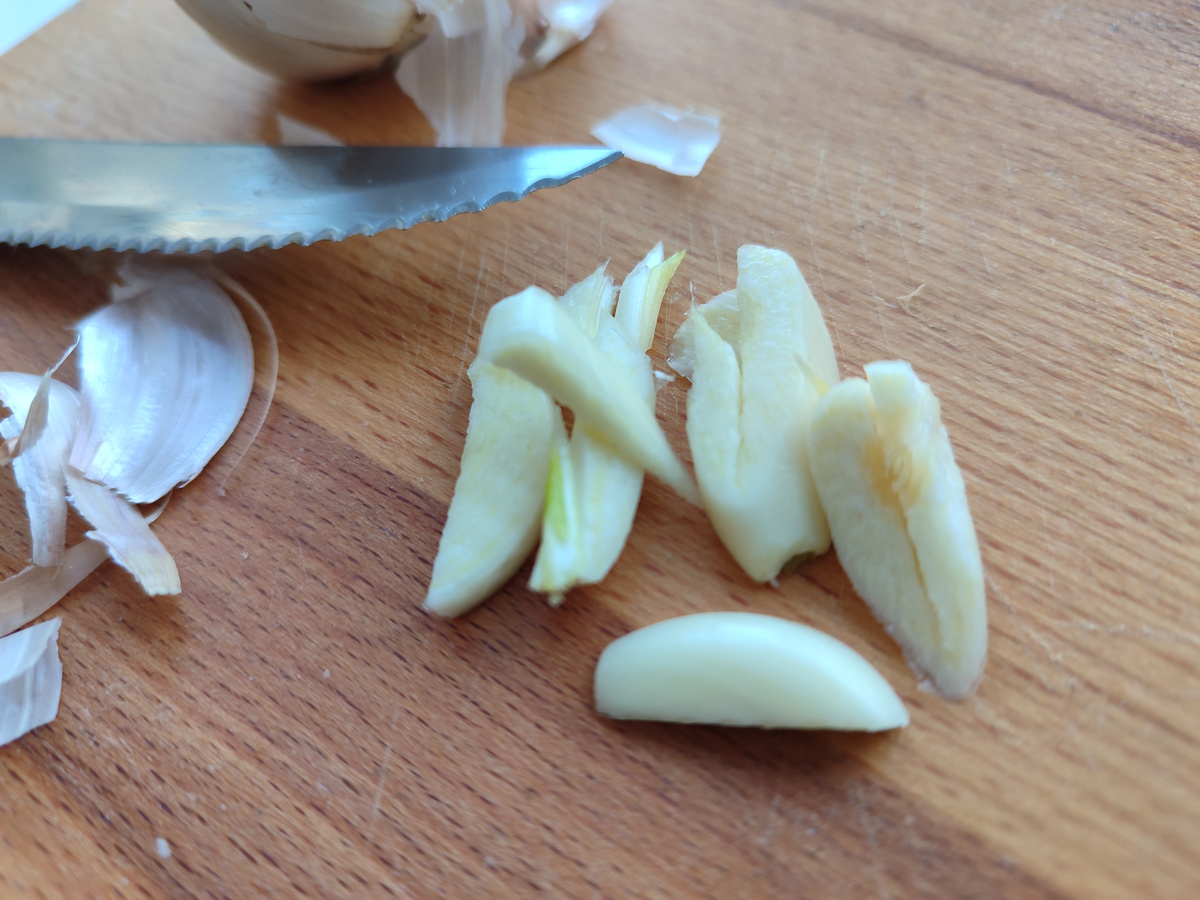 1. Начните с чеснока: нарежьте его и поджарьте в масле до золотистого цвета. Это станет основой для насыщенного аромата блюда.