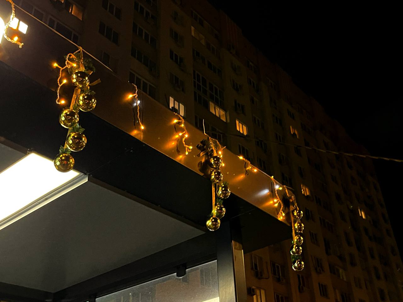 Также к остановкам с освещением смонтированы нарядные инсталляции с шарами. Получилось ярко, современно и с любовью к городу.
