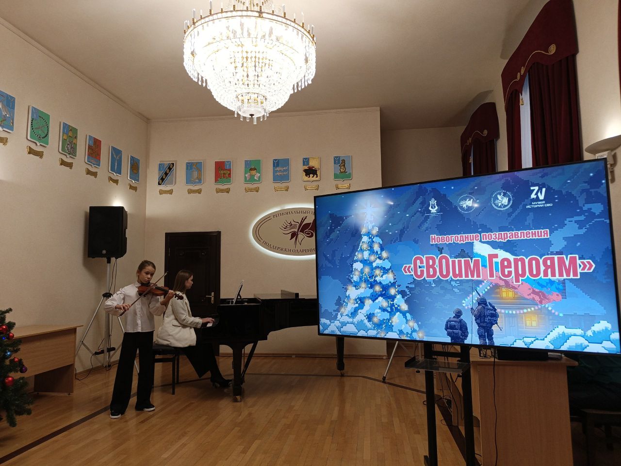 Состоялся концерт для семей участников специальной военной операции и церемония награждения победителей областного конкурса художественного и литературного творчества «СВОим Героям». Новогодние открытки и талисманы будут отправлены бойцам на фронт.