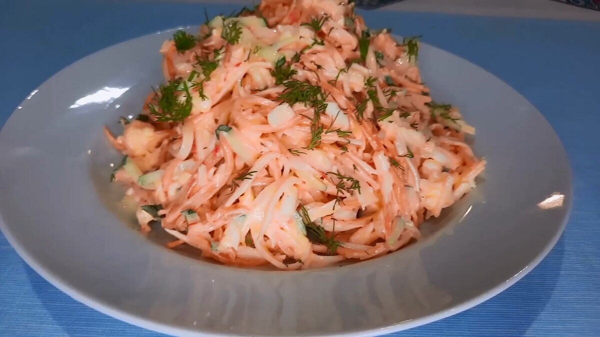 Этот салат завораживает своим нежным сливочным вкусом, дополненным пикантными нотками. Идеальный вариант для тех, кто хочет побаловать себя и своих близких оригинальным блюдом, которое исчезает со стола в считанные минуты.