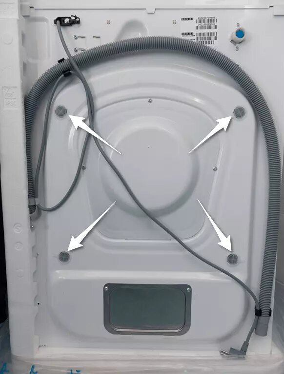 Если болты отсутствуют, рекомендуем минимизировать риски. Заполните пространство вокруг барабана мягкими материалами — это предотвратит его смещение во время транспортировки. Закройте люк и закрепите его, чтобы предотвратить открытие при движении. Следует максимально жестко фиксировать устройство, чтобы избежать незапланированных повреждений.