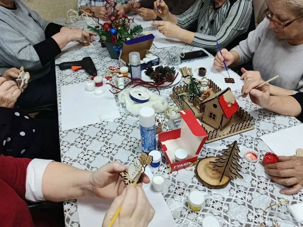 Новогодняя арт-терапия: получатели услуг центра соцобслуживания Самойловского района занимаются творчеством