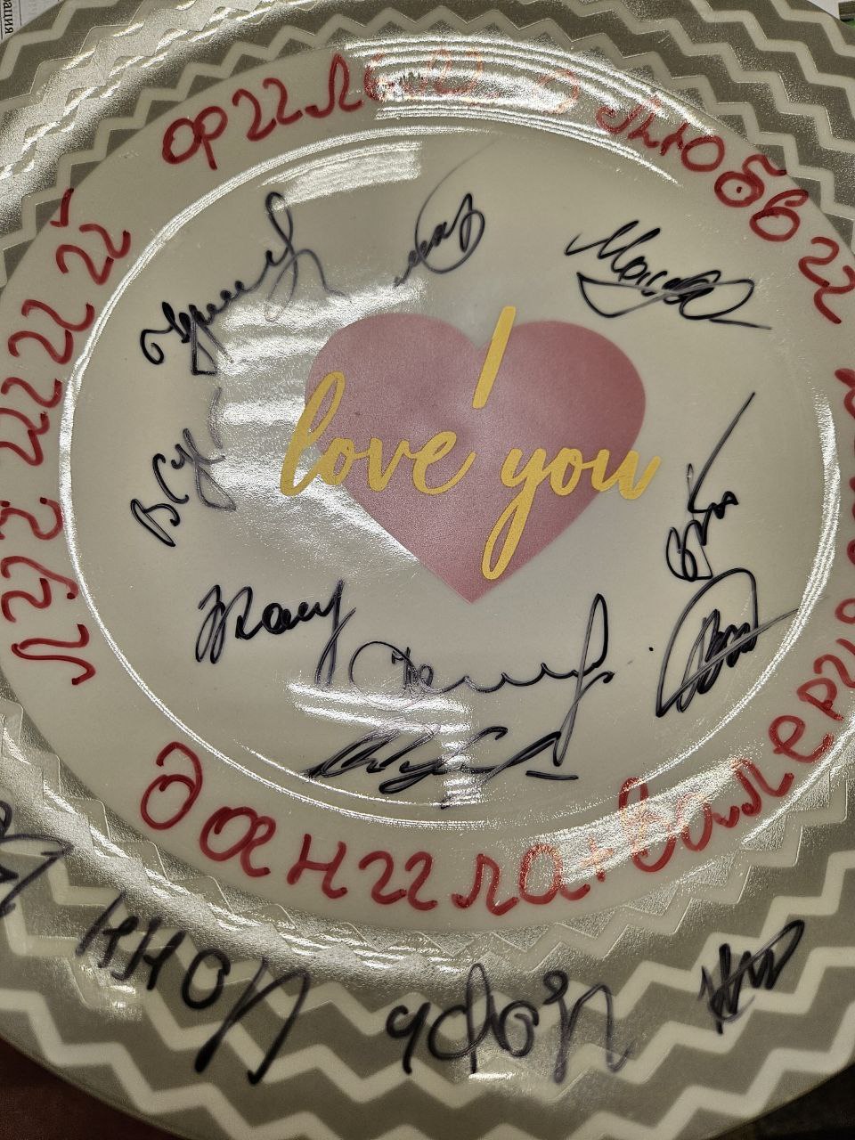 Согласно кинотрадициям, перед началом регистрации приглашенные оставляли автографы на тарелке. В конце ее вручали молодоженам на память.