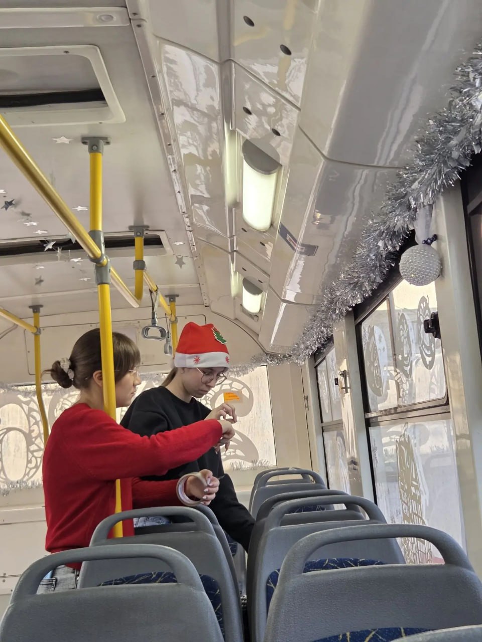 В рамках участия в региональной акции «Волшебные маршруты. Путешествие к Новому году» под руководством советника директора по воспитанию СОШ 32 имени А.С. Пушкина Данила Дубова обучающиеся и педагоги энгельсских школ № 1,26,32 превратили салон электробуса в сказочное пространство.