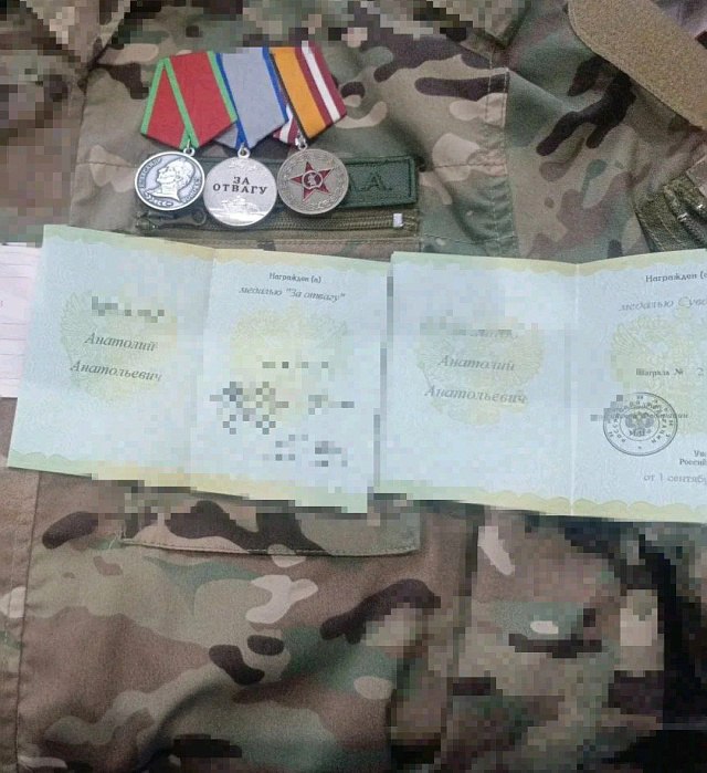 Анатолий удостоен высоких государственных наград: медали "Участнику специальной военной операции", медали Суворова и медали "За отвагу".