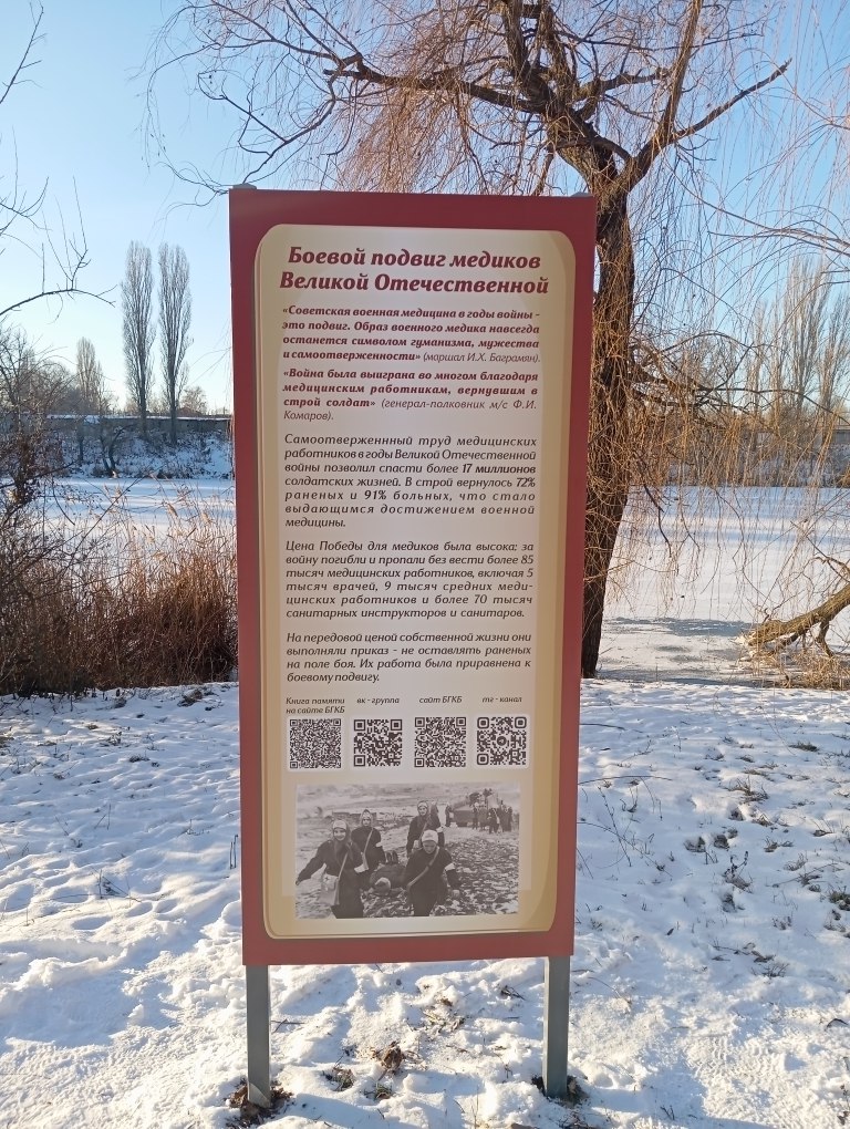 Осенью на Больничных прудах завершился монтаж технической части проекта с учетом масштабных планов по благоустройству данной территории, намеченных на 2026 год. Напротив лечебных корпусов ГУЗ СО «БГКБ» появился арт-объект - открытая книга с ладонью, рядом с которой расположена вдохновляющая надпись: «Горжусь работой в медицине». Сегодня содержимым также наполнились пилоны, рассказывающие о боевом подвиге медиков в годы Великой Отечественной войны, о работе медперсонала во время пандемии COVID-19, о достижениях современной медицины в БГКБ, а также о социальных льготах и поддержке молодых специалистов в БМР.