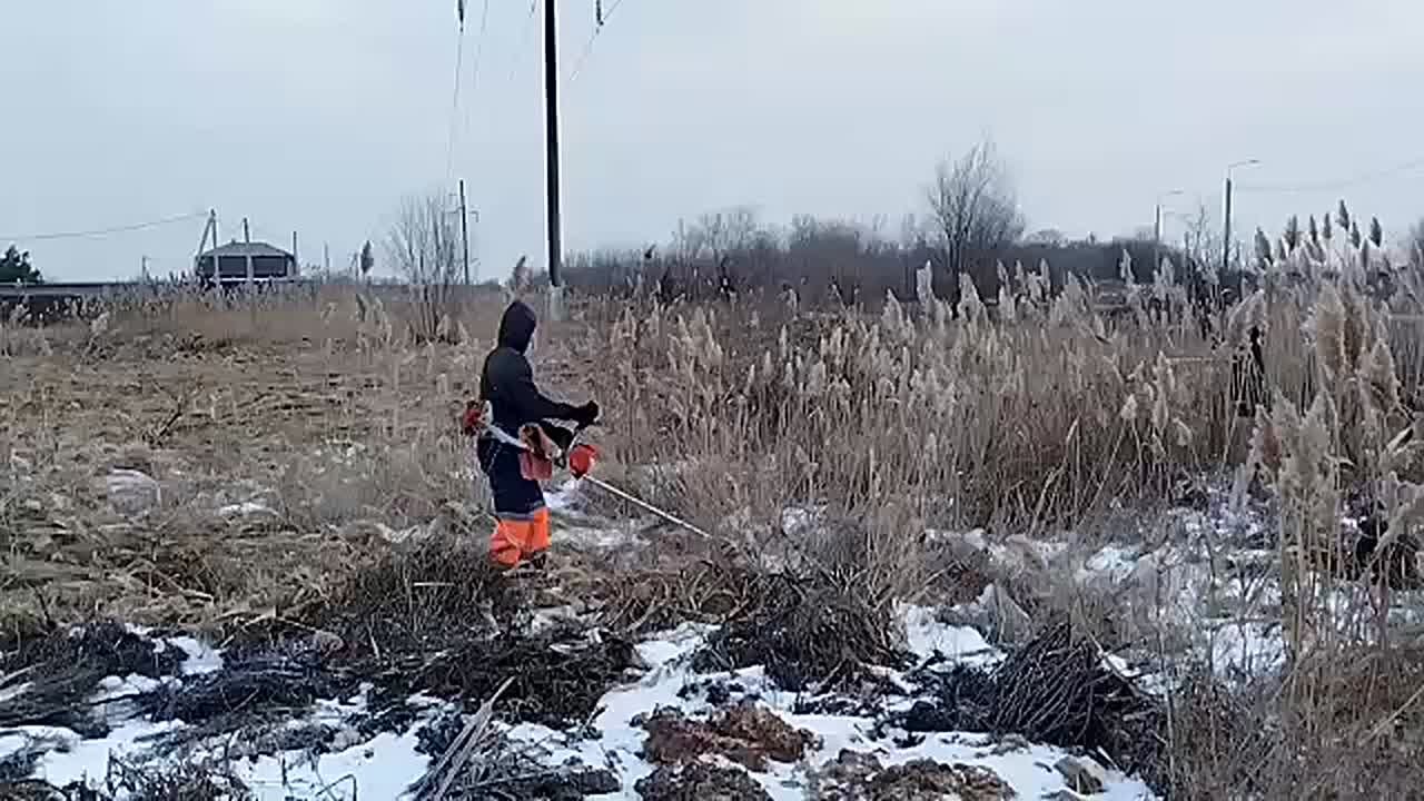 Покос камыша и сухой растительности;