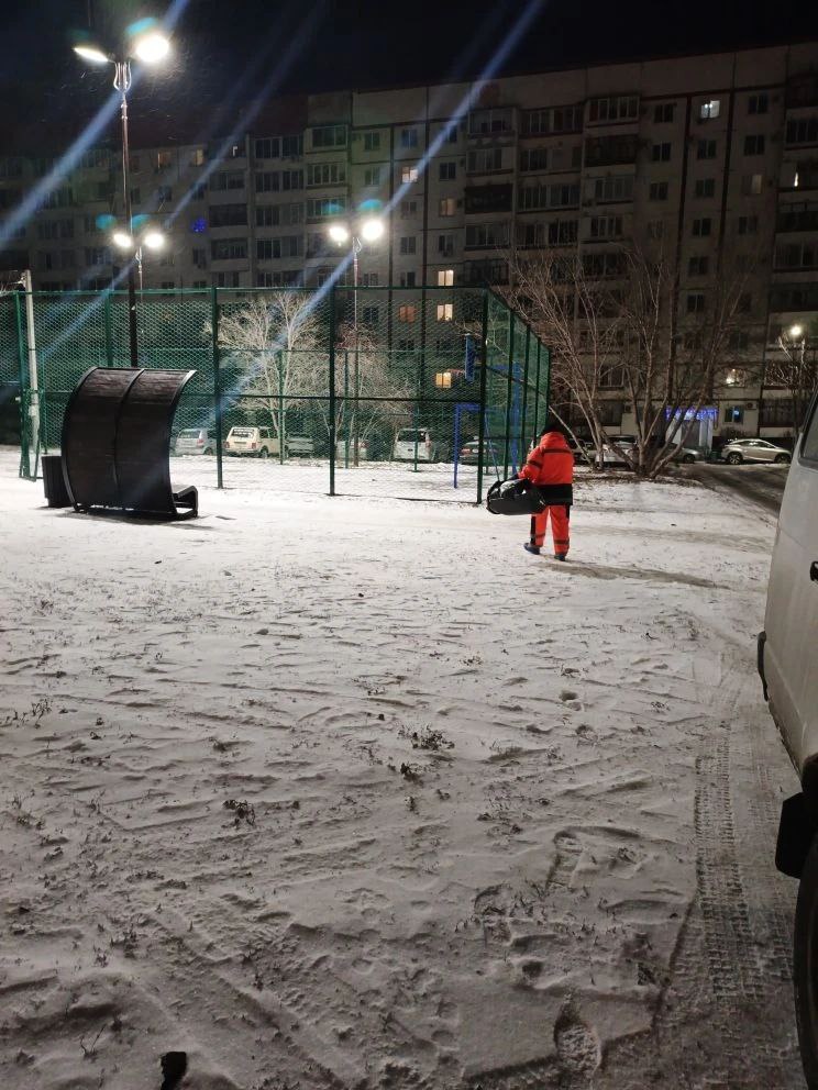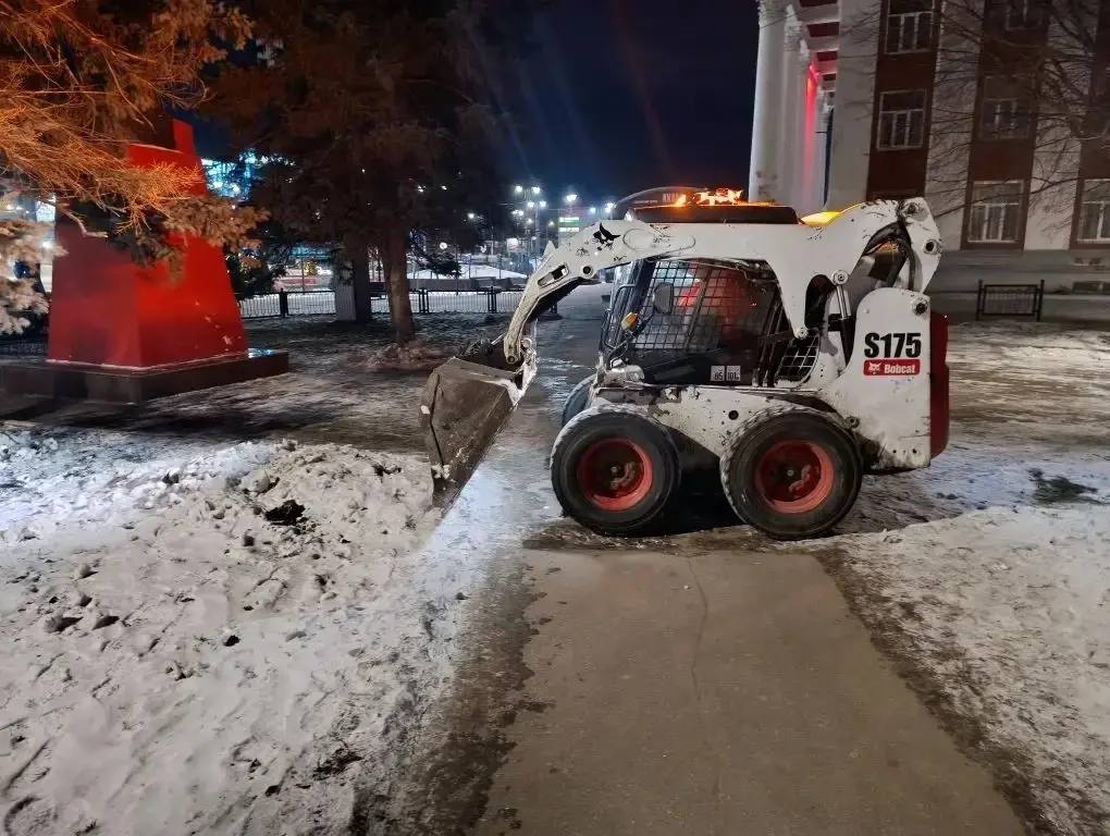 Утром работы продолжились. Работы ведутся на улицах, в парках и скверах. В течение дня коммунальные службы продолжат убирать и посыпать тротуары, дорожки в парках и скверах, а также вывезут снег с улиц 30 лет Победы и Степной.
