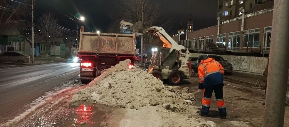 Уборка улично-дорожной сети организована в Ленинском и Октябрьском районах. Во Фрунзенском районе очищают тротуары, прилотковую часть дороги: обработка противогололедными материалами идет по ул. Большая Казачья, ул. Аткарская от ул. Б. Казачья до ул. Рабочая и др.; устранение последствий течи воды, срез и вывоз наледи - на ул. Рабочая/им.Емлютина, им. Емлютина/им. Слонова, ул. им.Рахова, 145.