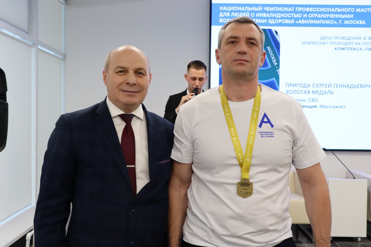 В рамках церемонии награждения 21 студент и школьник получили заслуженные медали. В этом году победителем Национального чемпионата «Абилимпикс» в компетенции «Массажист» стал ветеран специальной военной операции Сергей Пригода.
