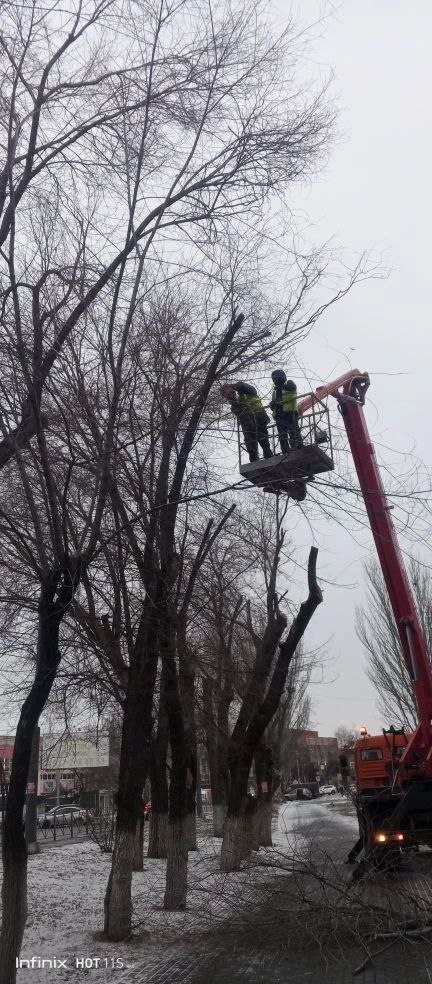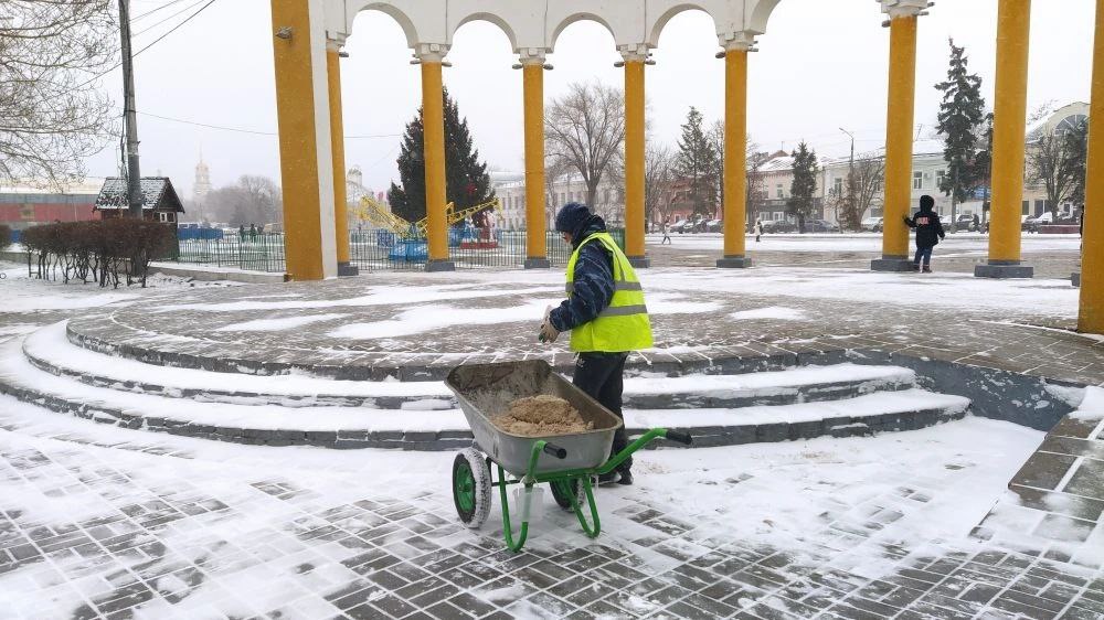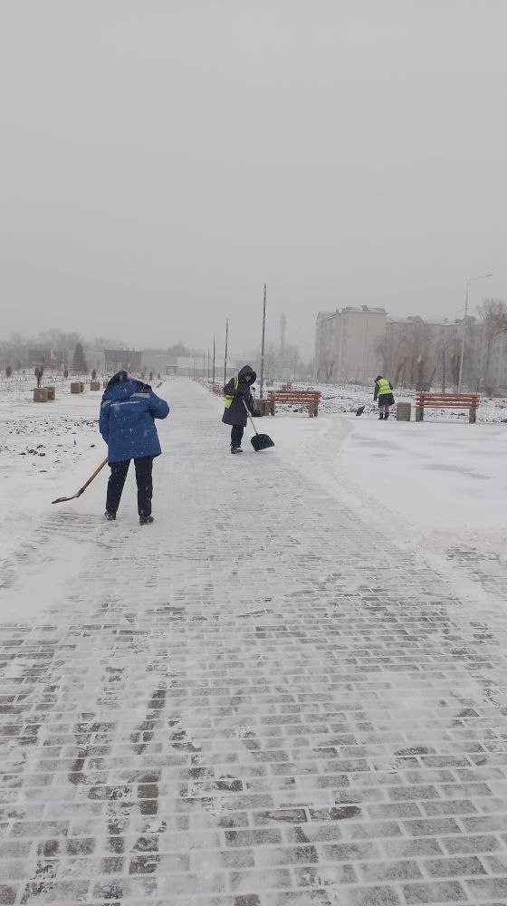 Бригады МКУ «Озеленение» убирают снег на общественных территориях