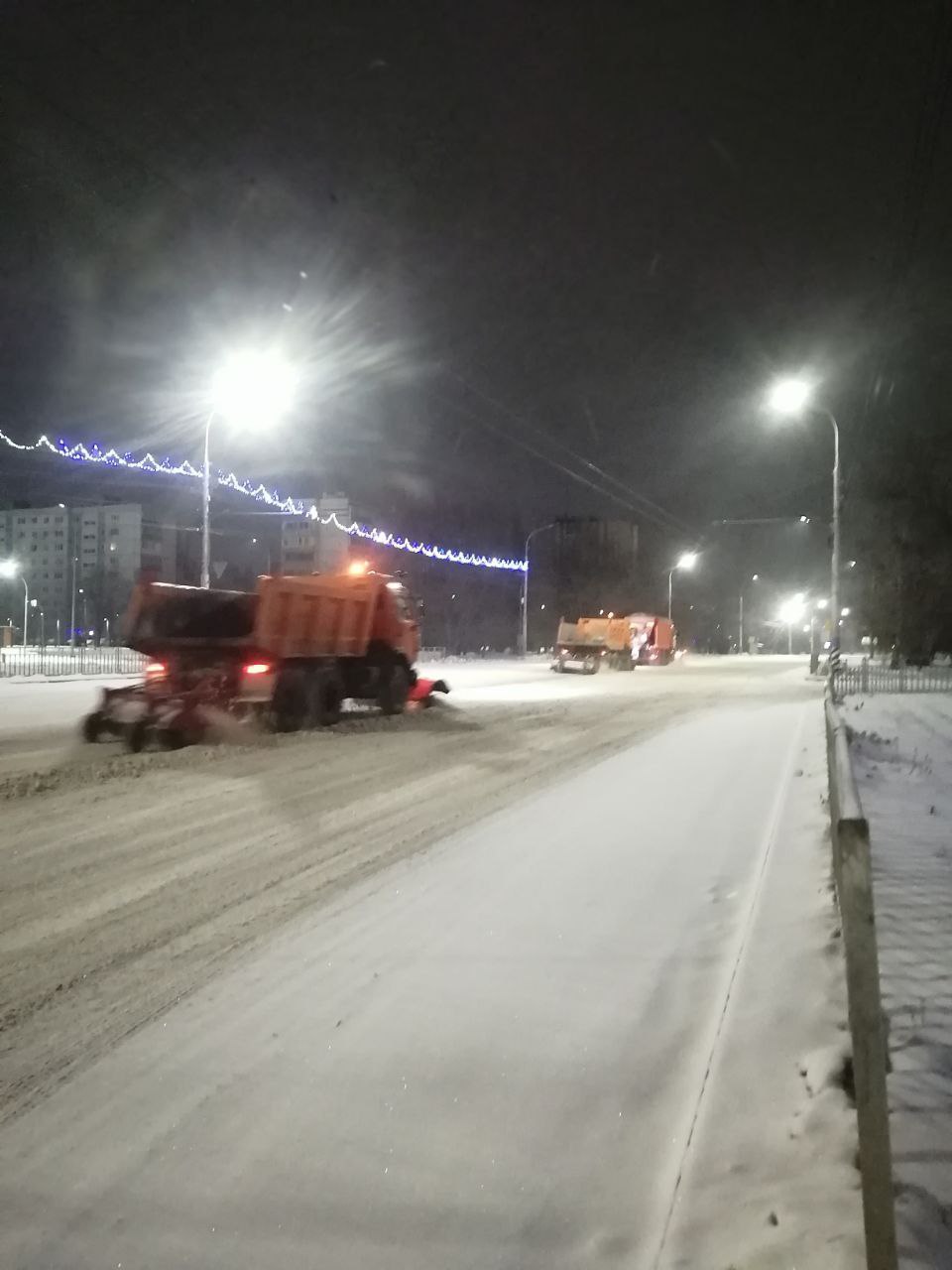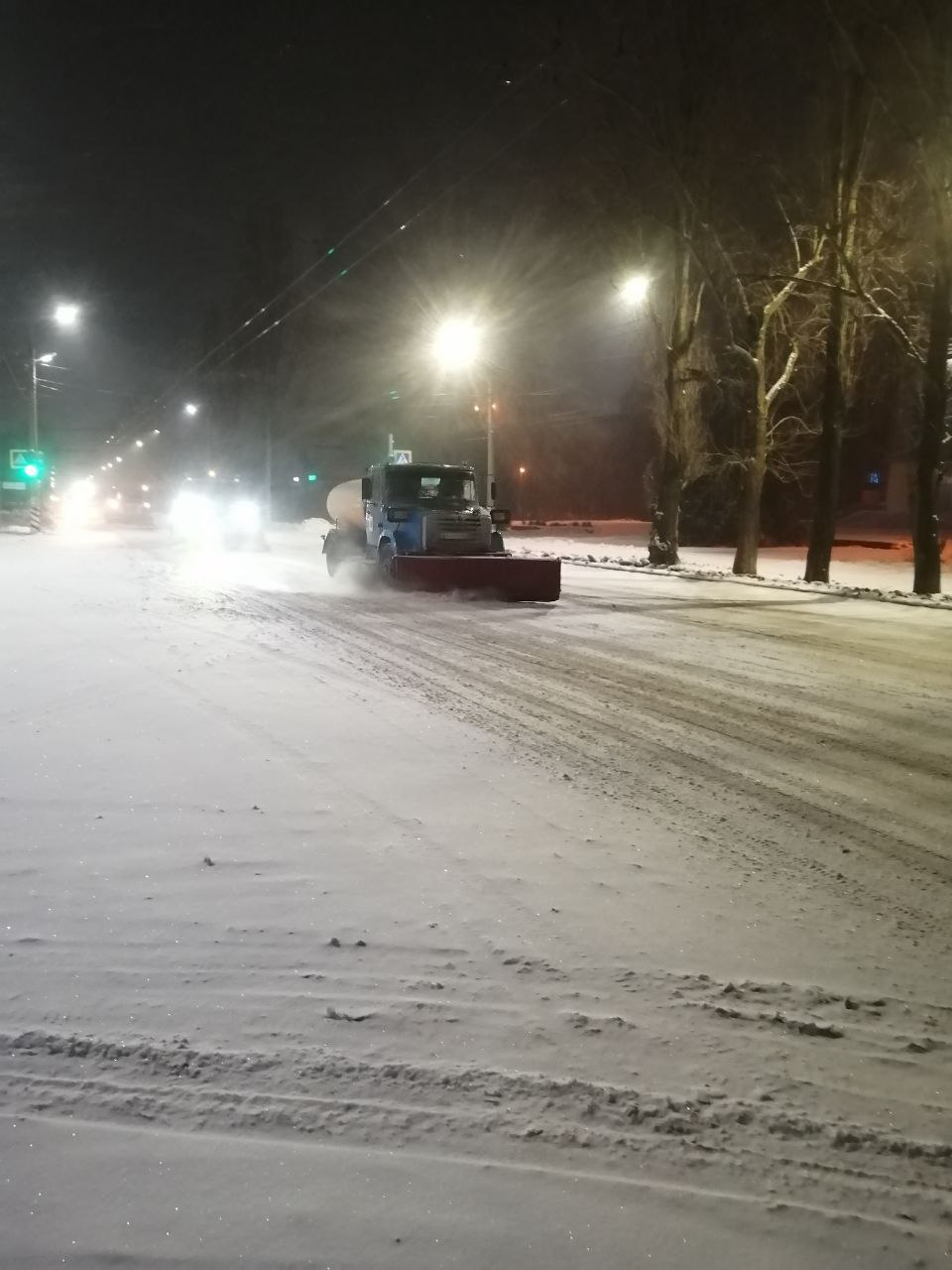 Всю ночь шел снег. На очистку дорог и пешеходных дорожек сразу вышло 48 единиц техники. Работы проводились во всех частях города. Также сотрудники «Комбината благоустройства» производили посыпку дорог и тротуаров пескосоляной смесью. За ночь её израсходовали порядка 360 тонн.