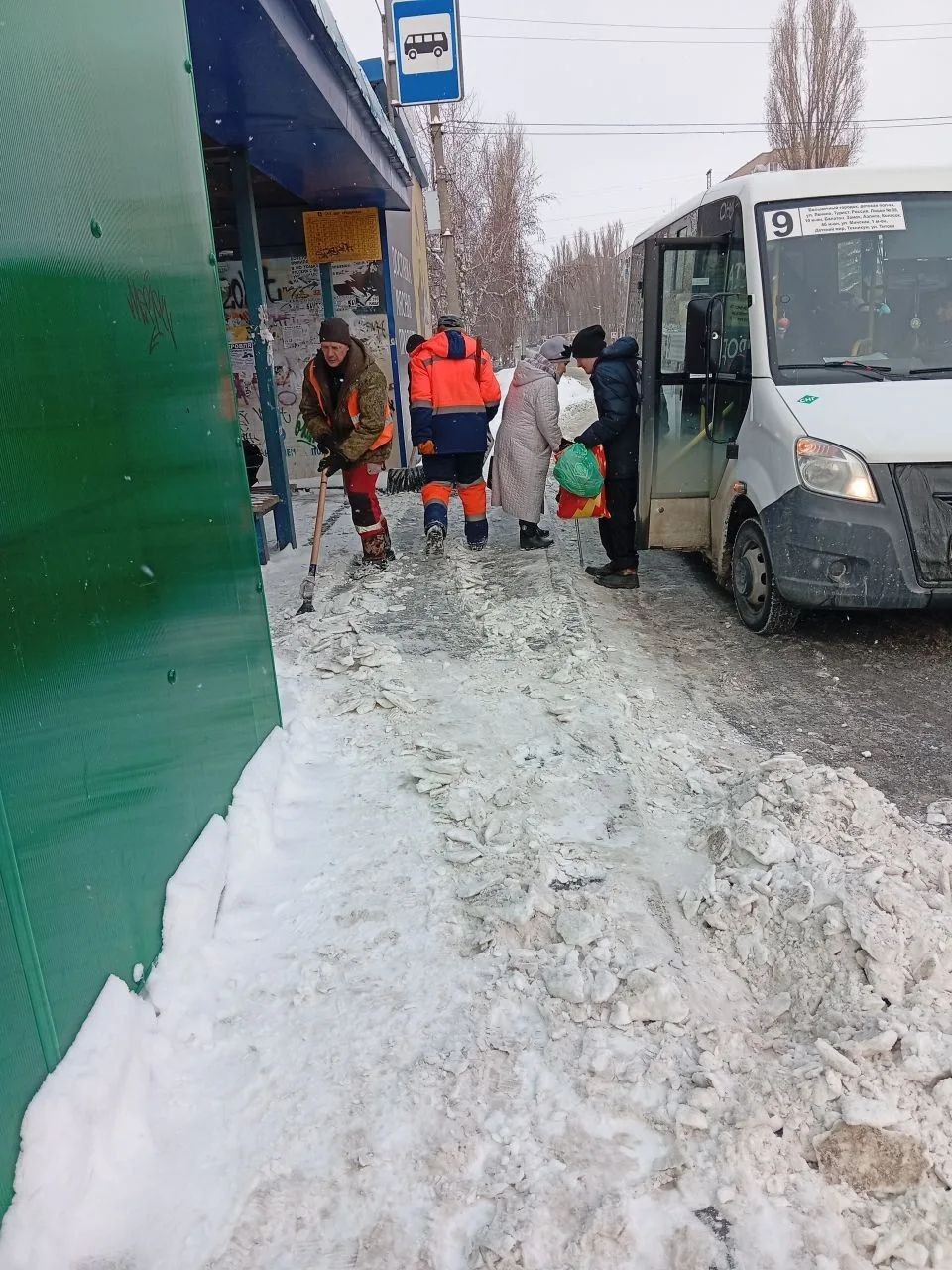 В плановом режиме сотрудники «Комбината благоустройства» очищают остановочные павильоны в районе улиц Шевченко, Ленина, Комарова, Титова и Дружбы.