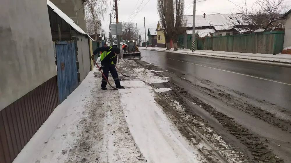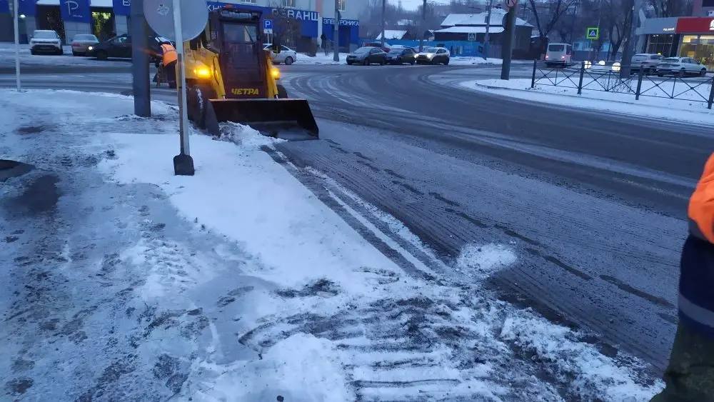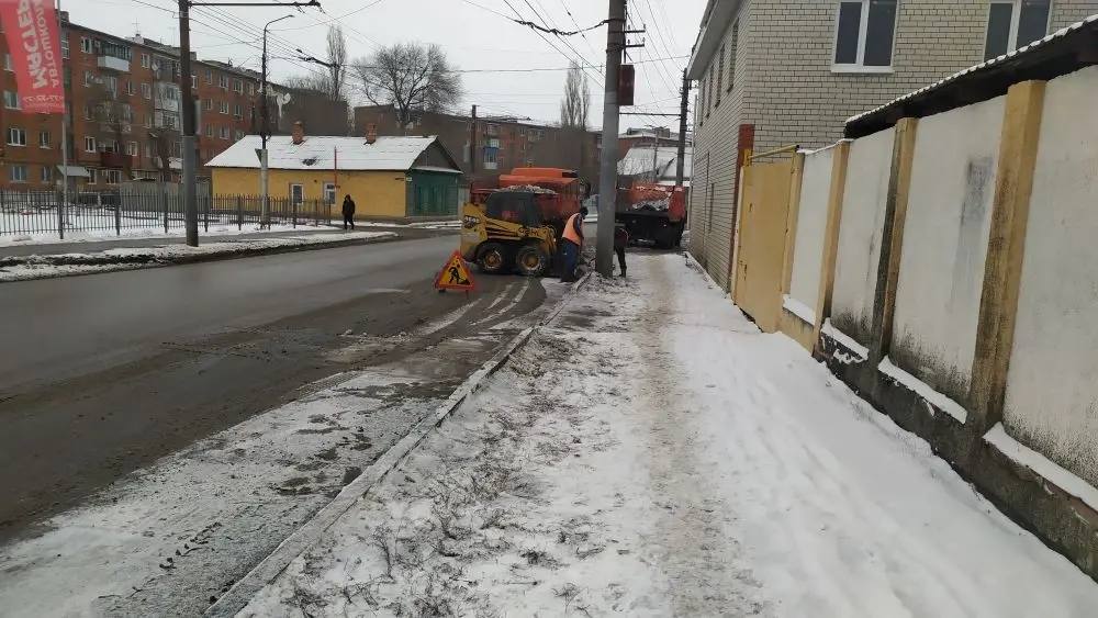 В работе была задействована специализированная погрузочная и самосвальная техника. Параллельно продолжали очистку тротуарной сети города.