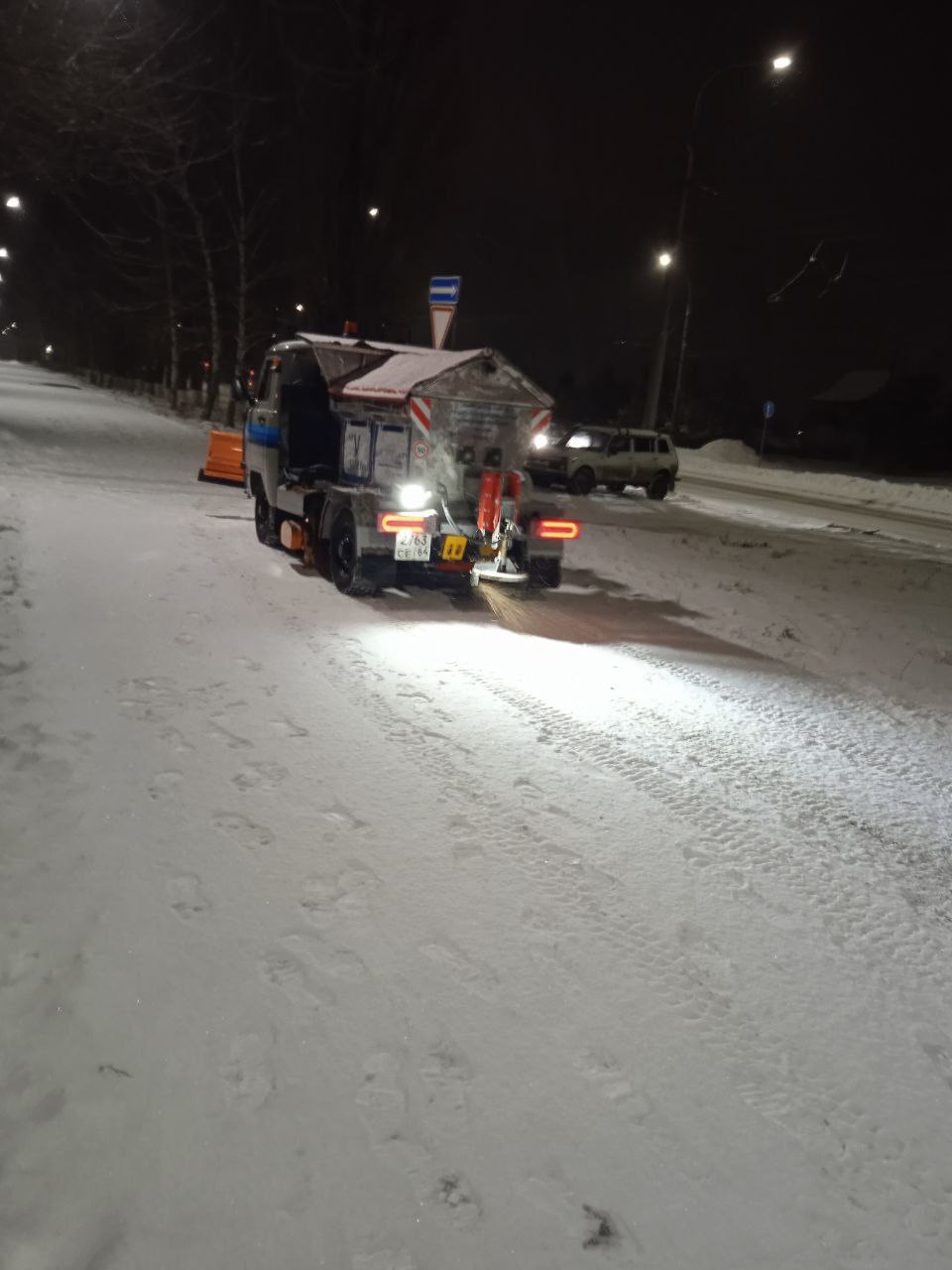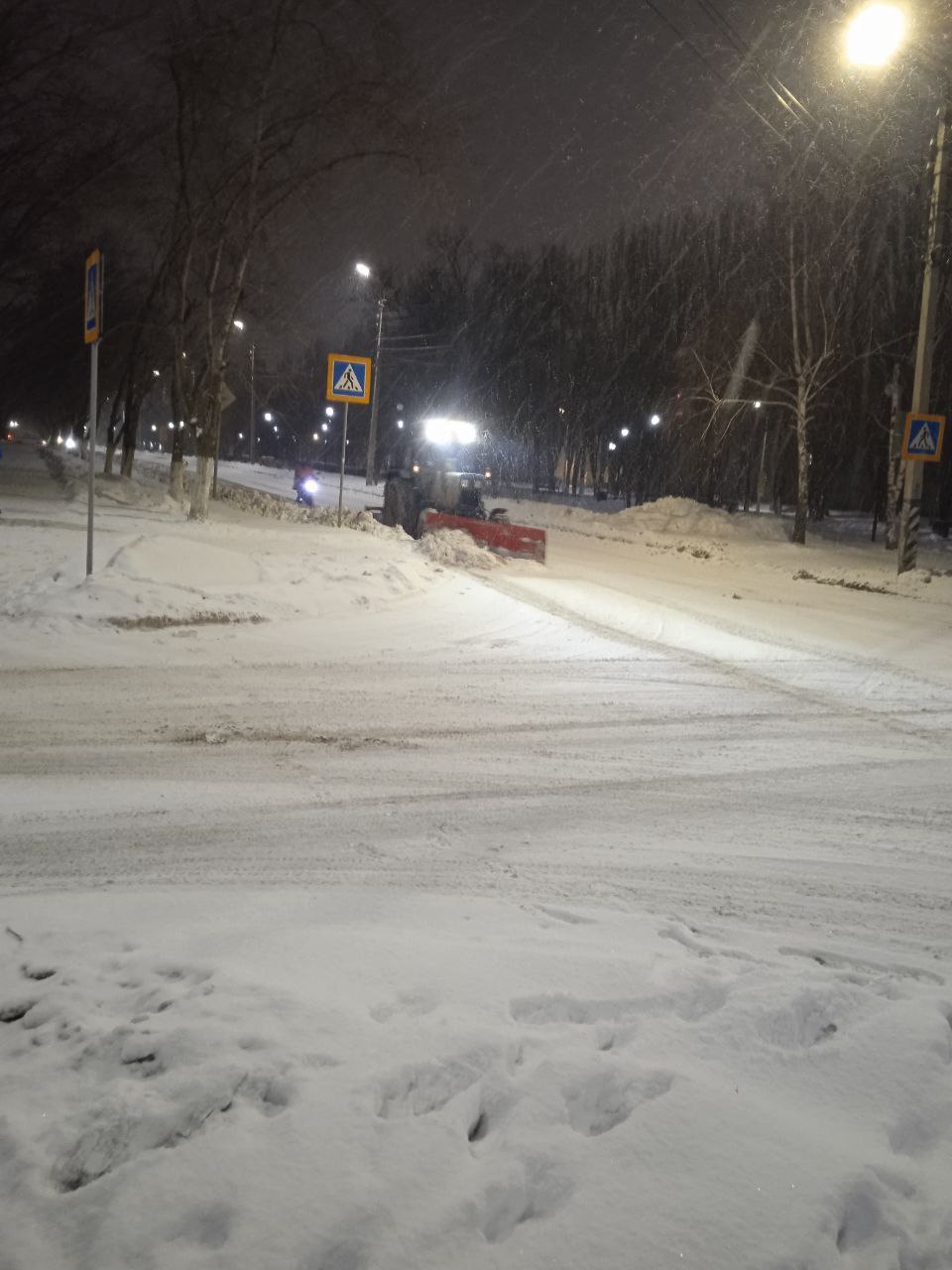 Пока большинство жителей спят, коммунальная техника убирает и посыпает пескосоляной смесью улицы города Балаково. Ранним утром к работе присоединятся больше людей и техники для борьбы со снегом.