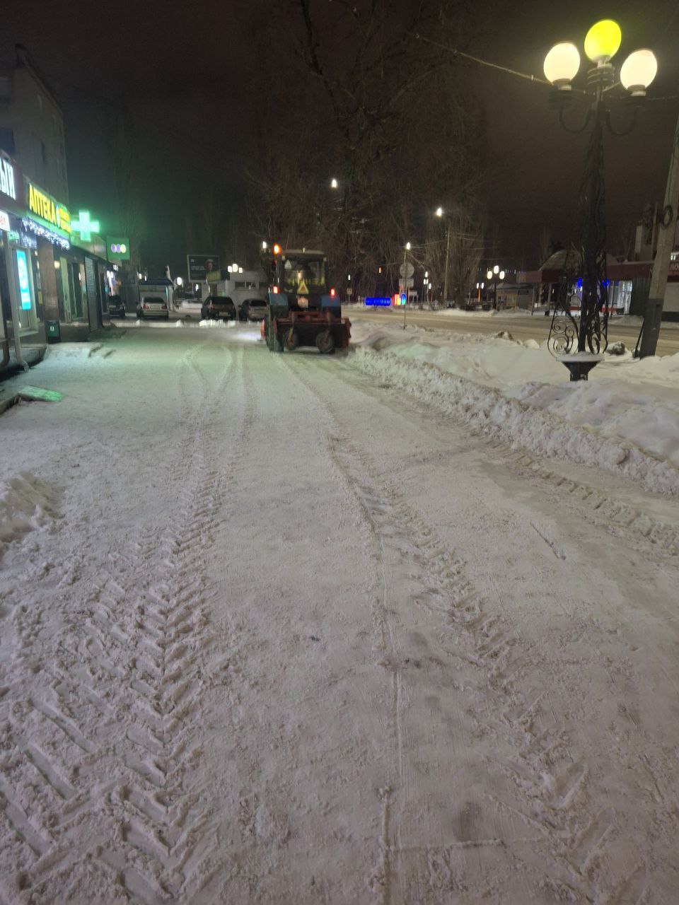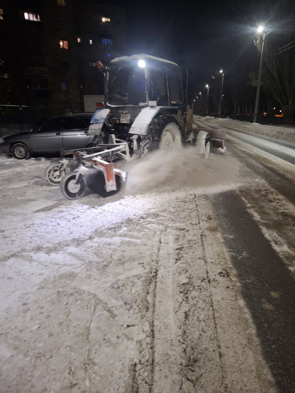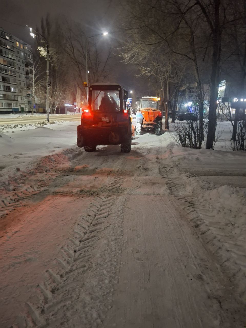 Прямо сейчас коммунальная техника работает на улицах города Балаково. Сотрудники «Комбината благоустройства» очищают от снега дороги и тротуары.