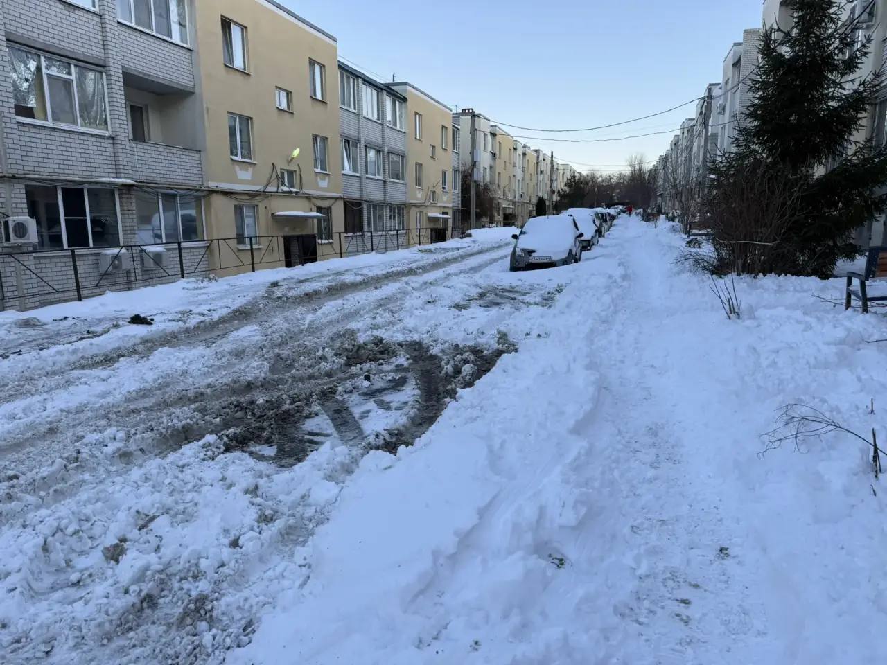 Двор дома № 1 по ул. Усть-Курдюмская - одна сплошная снежная каша. Руководителю ТСЖ «Олимп» указано незамедлительно очистить двор. В таком же состоянии и дворовая территория дома № 11 по ул. Усть-Курдюмская.