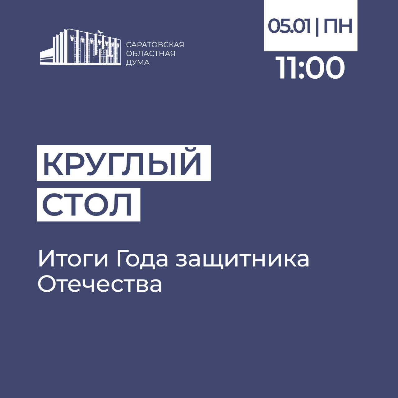 5 января состоится заседание круглого стола на тему: «Итоги Года защитника Отечества в регионе»
