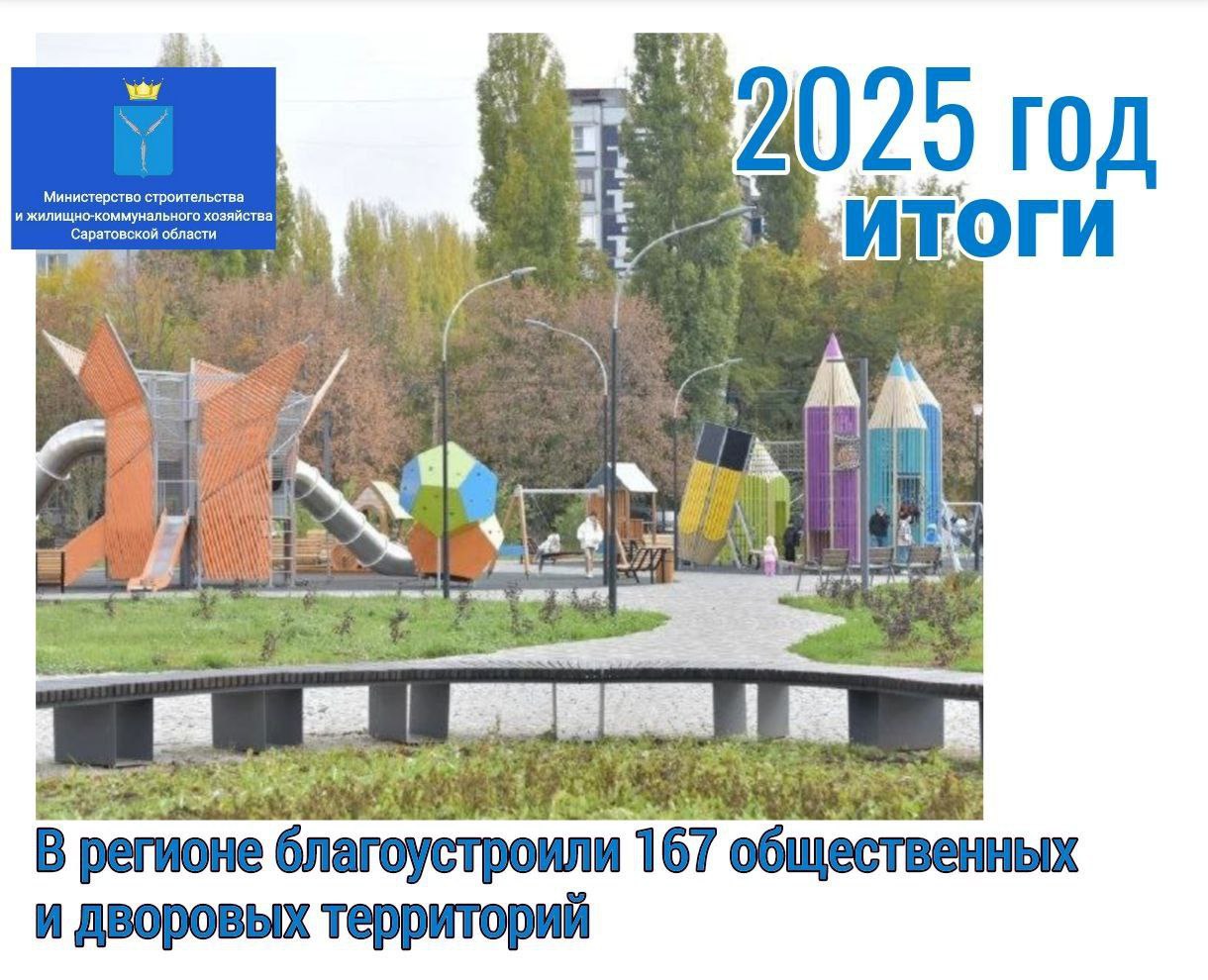 В 2025 году в Саратовской области благоустроили 167 общественных и дворовых территорий