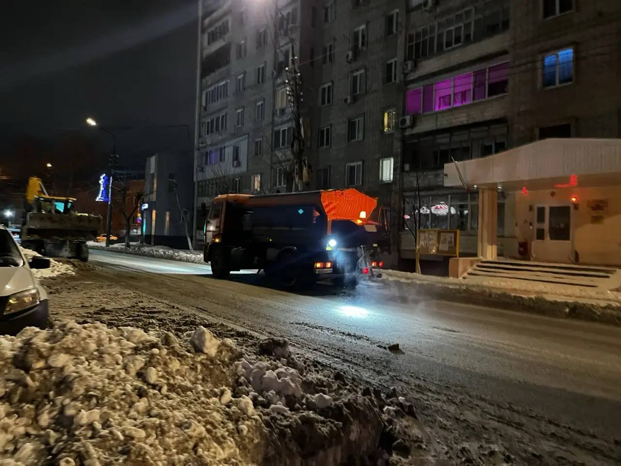 Особое внимание минувшей ночью было уделено механизированной обработке и уборке улиц, очистке тротуаров и вывозу снега. С утра ведутся работы по расширению проезжей части силами МКУ «Городское хозяйство».