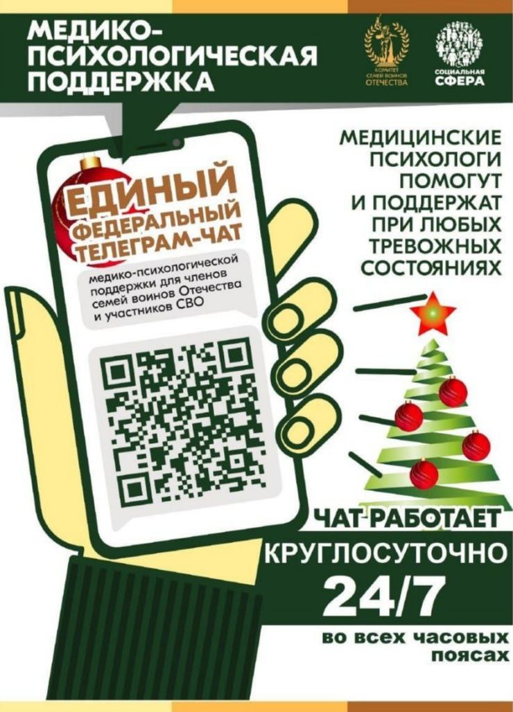 Продолжает свою работу единый федеральный чат Комитета семей воинов Отечества по оказанию медико-психологической поддержки семьям и участникам специальной военной операции (СВО) в круглосуточном режиме.