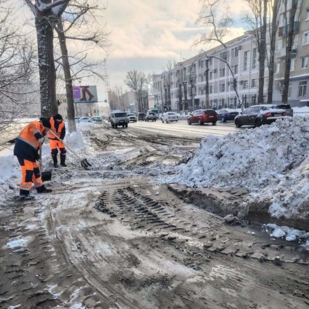 Противогололедных материалов израсходовали около 2 тыс. 800 тонн. Что также больше, чем в ночное время.