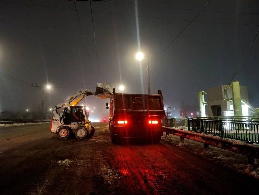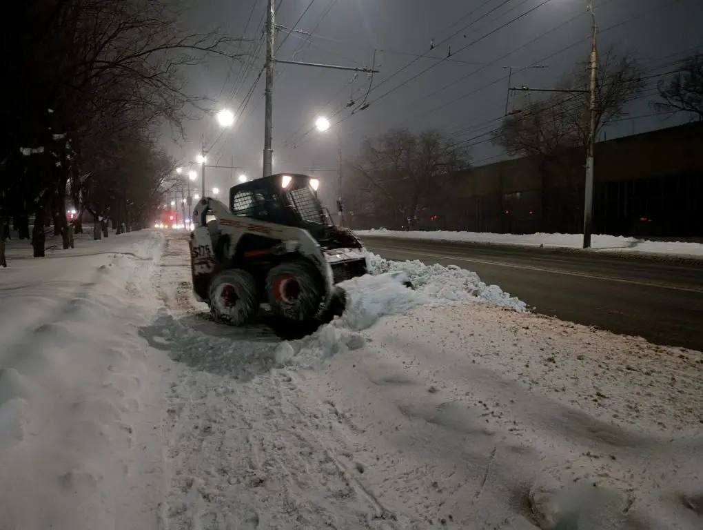 В течение ночи городские коммунальные службы вели уборку снега и наледи на улично-дорожной сети